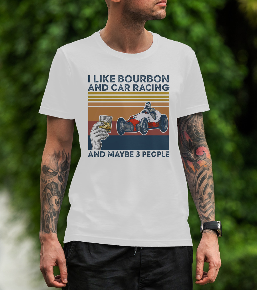 I Like Bourbon And Car Racing With Maybe 3 People Racer And Drink T-Shirt