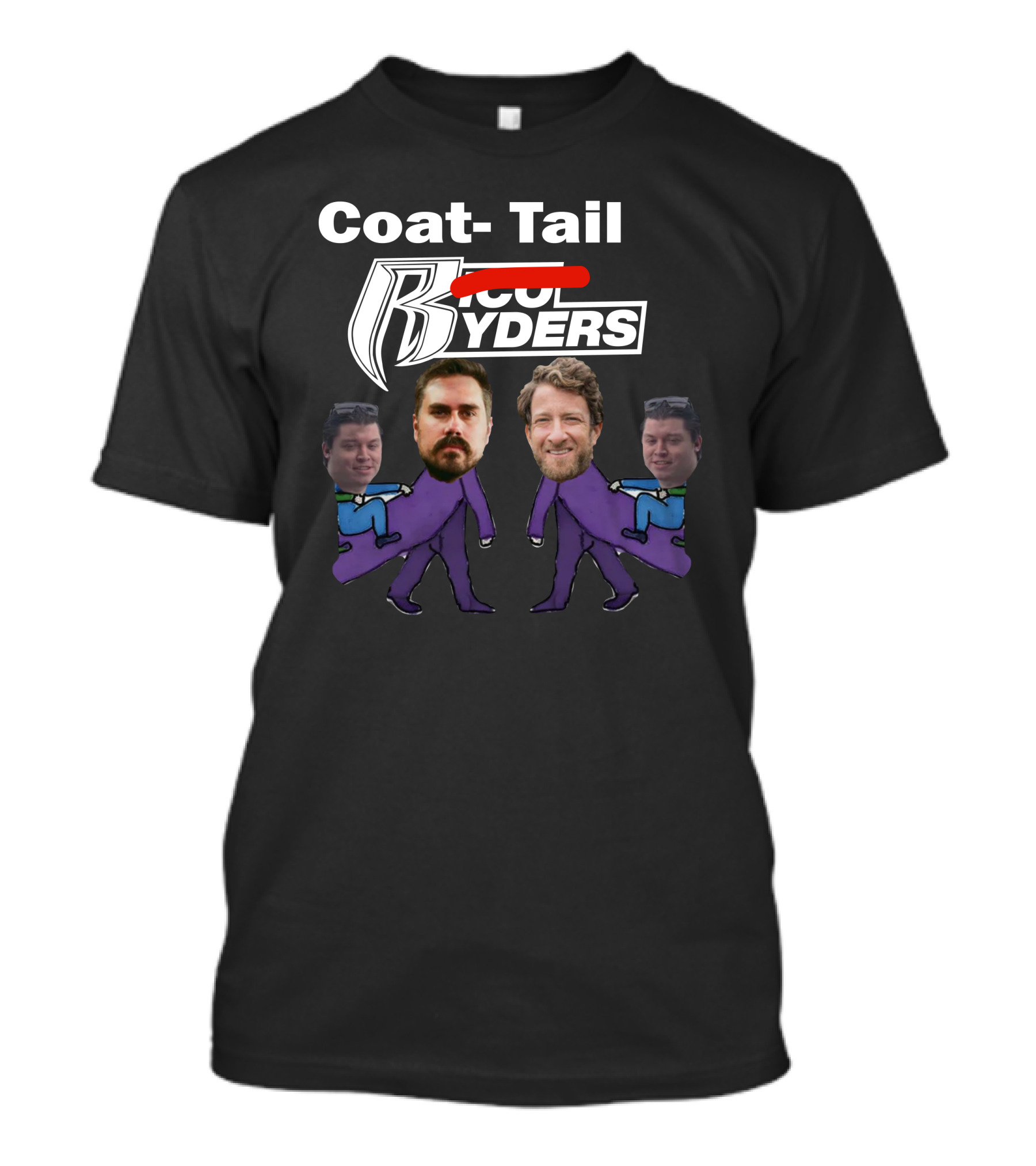 The Coat-Tail Ryders T-shirt is designed for everyday wear and a consistent fit. Fabric is pre-shrunk ring-spun cotton with durable stitching. See the size chart below for exact measurements.