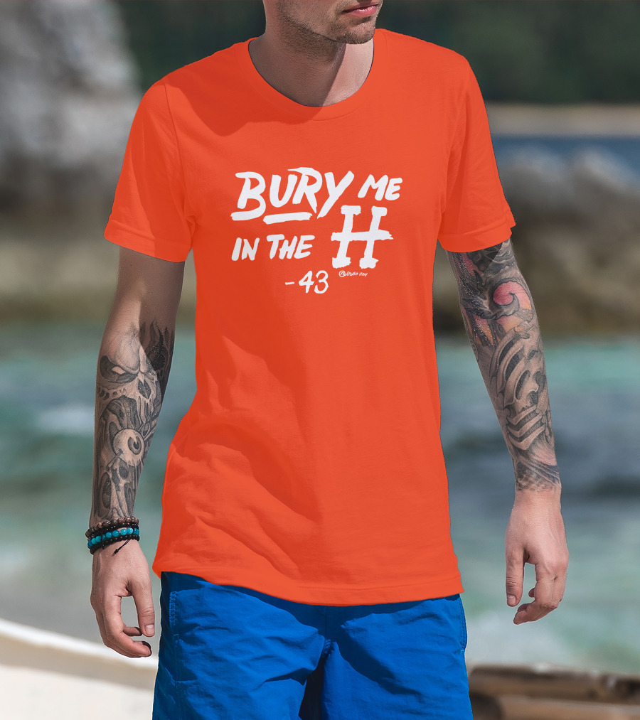 The Bury Me In The H 43 Apollo Hou Merch Store Lance McCullers Jr T-shirt is designed for everyday wear and a consistent fit. Fabric is pre-shrunk ring-spun cotton with durable stitching. See the size chart below for exact measurements.