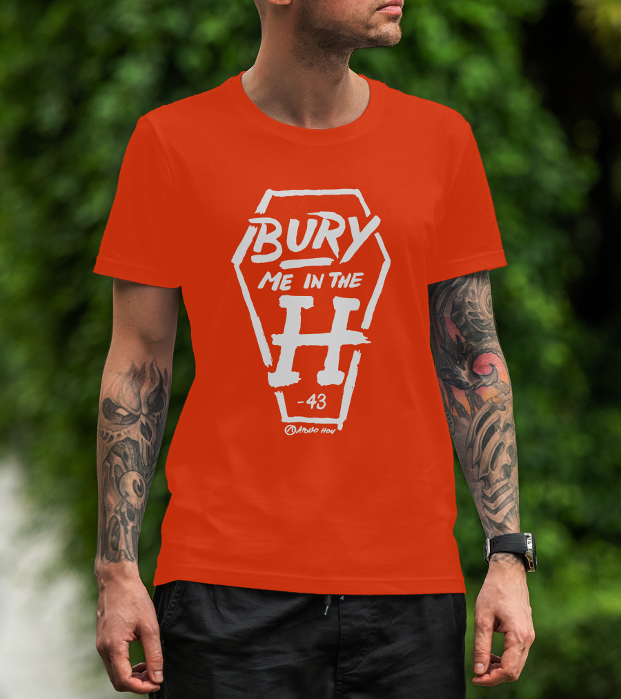 The Bury Me In The H Coffin 43 Apollohou Apollo Media T-shirt is designed for everyday wear and a consistent fit. Fabric is pre-shrunk ring-spun cotton with durable stitching. See the size chart below for exact measurements.