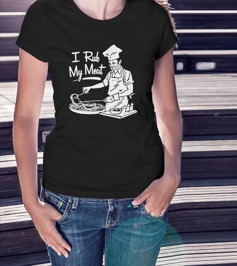 I Rub My Meat Chef Preparing Barbecue Cooking Humorous Phrase T-Shirt