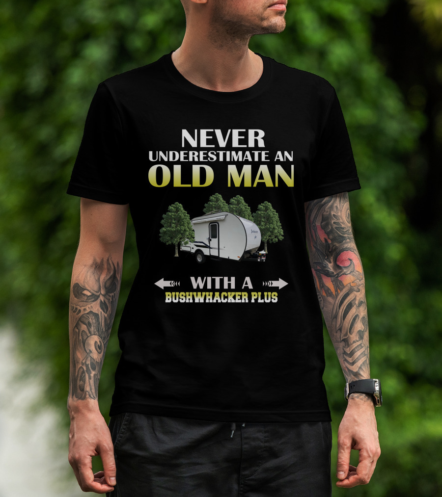 NEVER UNDERESTIMATE AN OLD MAN WITH A BUSHWHACKER PLUS T-Shirt