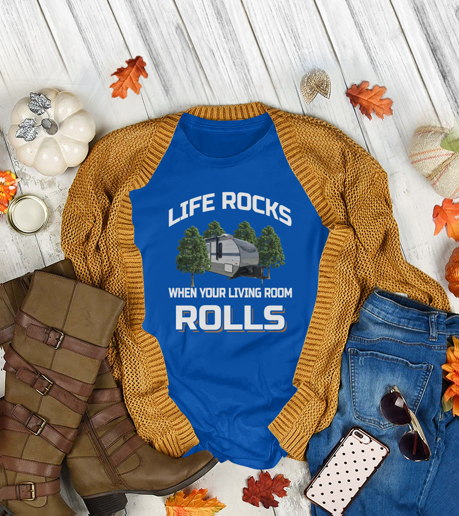 The Life Rocks When Your Living Room Rolls Gulf Stream Ameri Lite T-shirt is designed for everyday wear and a consistent fit. Fabric is pre-shrunk ring-spun cotton with durable stitching. See the size chart below for exact measurements.