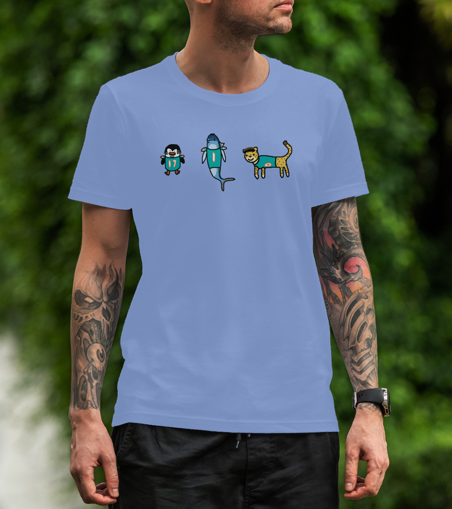 Waddle 17 Miami Dolphins Penguin Shark Cheetah Quirky Football Mascots T-Shirt