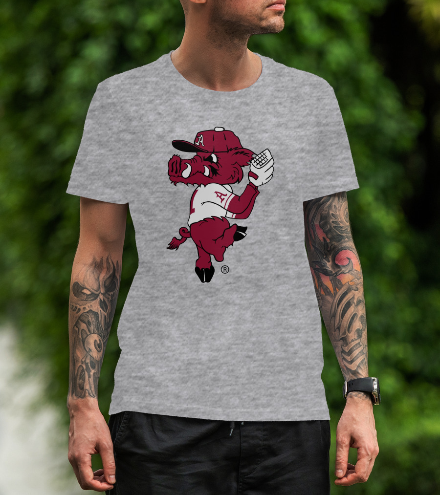 Razorbacks Pitching Ribby Baseball Cartoon Character T-Shirt