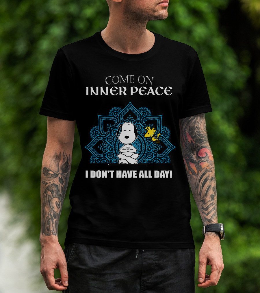 The Come On Inner Peace I Don't Have All Day Snoopy and Woodstock Lotus Mandala T-shirt is designed for everyday wear and a consistent fit. Fabric is pre-shrunk ring-spun cotton with durable stitching. See the size chart below for exact measurements.
