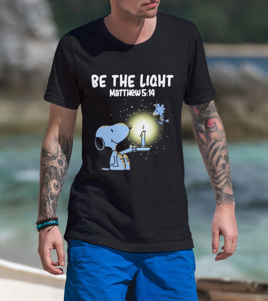 Be The Light Matthew 5:14 Snoopy Holding Candle Woodstock T-Shirt
