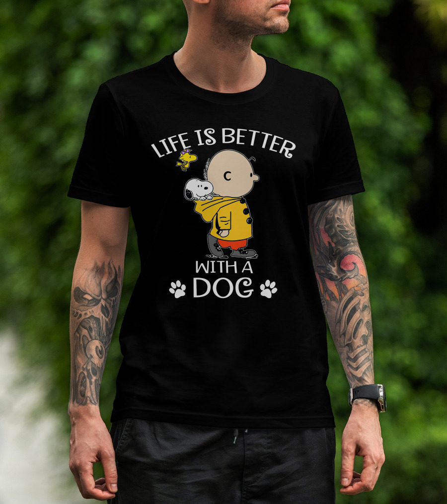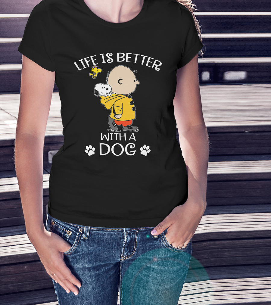 Life Is Better With A Dog Snoopy Charlie Brown Woodstock Paw Prints T-Shirt