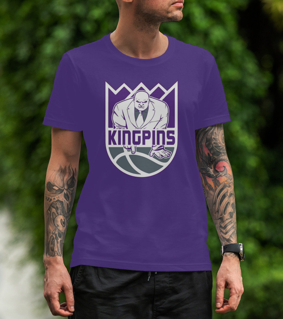 The Sacramento Kingpins NBA Basketball T-shirt is designed for everyday wear and a consistent fit. Fabric is pre-shrunk ring-spun cotton with durable stitching. See the size chart below for exact measurements.