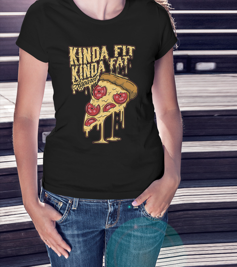 Kinda Fit Kinda Fat Apparel Melting Pizza Slice With Pepperoni Weights T-Shirt