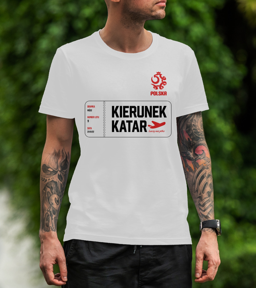 Kierunek Katar Polska 21/11/22 Lot Numer 9 Łączy Nas Piłka Bramka MŚ22 T-Shirt