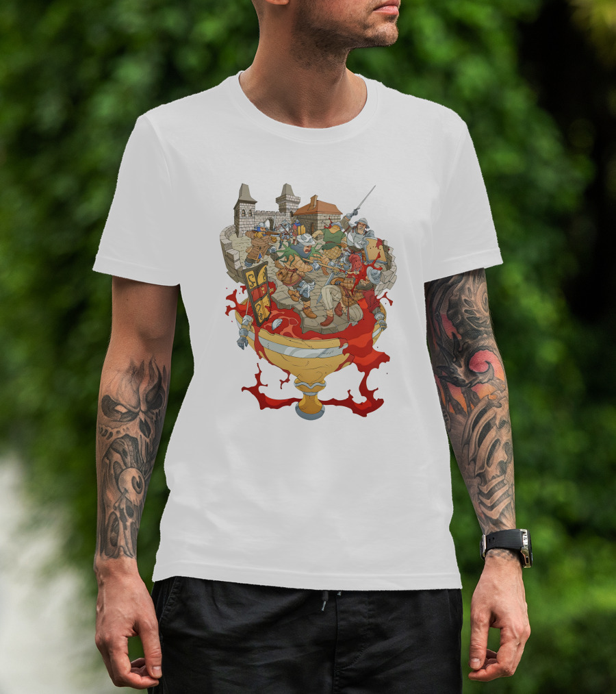Graman Hussite Medieval Battle In Front Of Castle With Sword And Shield Warriors T-Shirt