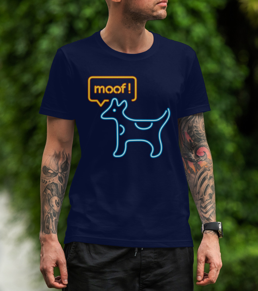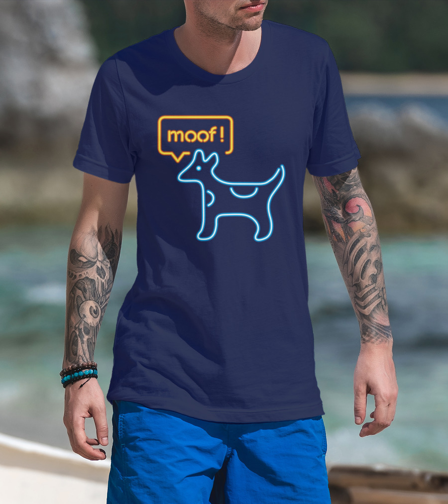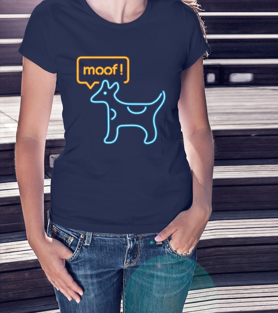 Bureau W W Dog Moof Ged Maheux Cow Neon Outline T-Shirt