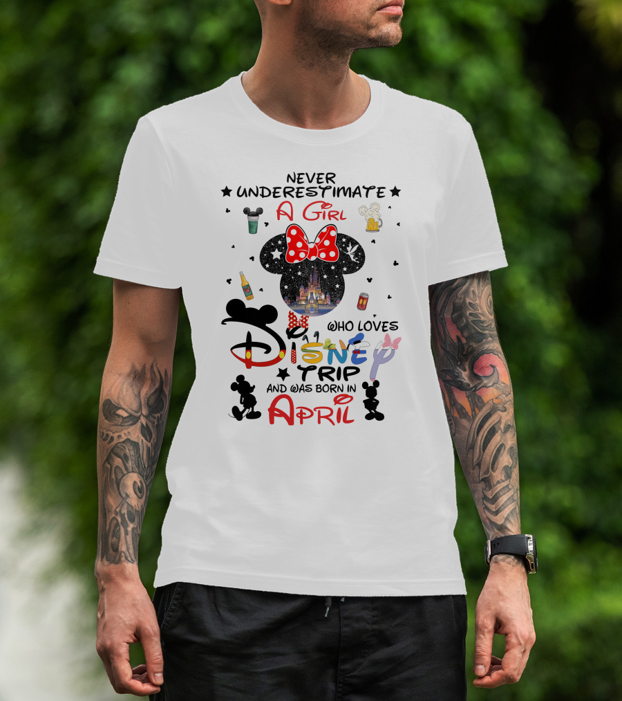 Never Underestimate A Girl Who Loves Disney Trip And Was Born In April T-Shirt