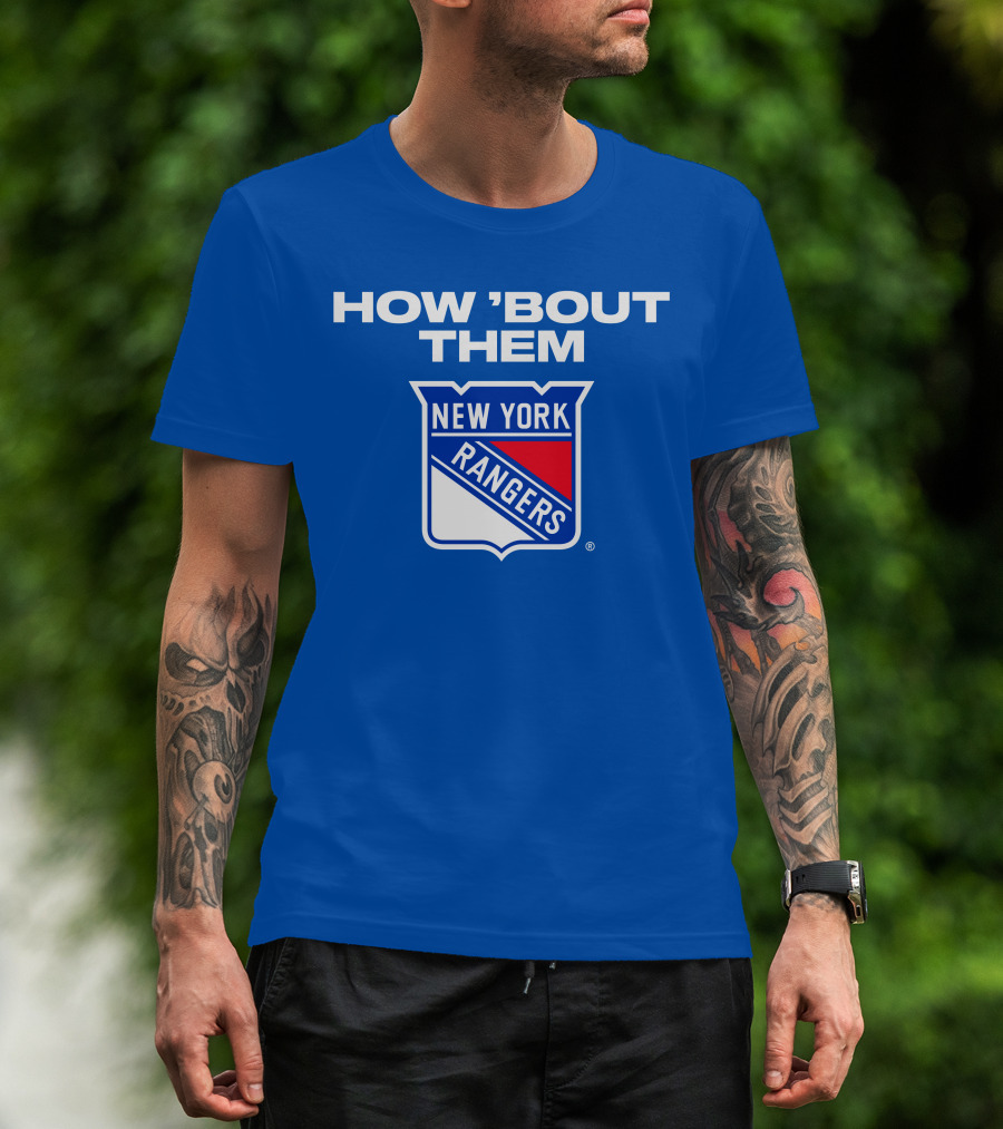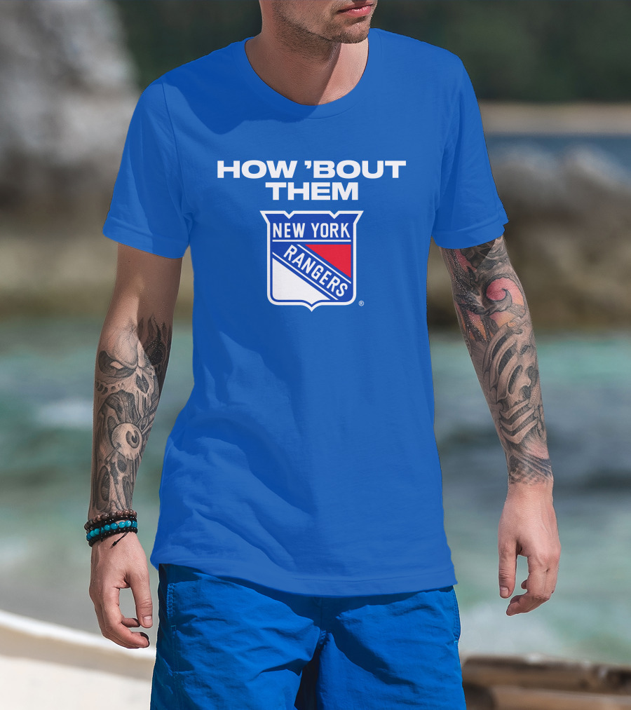 The How 'Bout Them New York Rangers T-shirt is designed for everyday wear and a consistent fit. Fabric is pre-shrunk ring-spun cotton with durable stitching. See the size chart below for exact measurements.