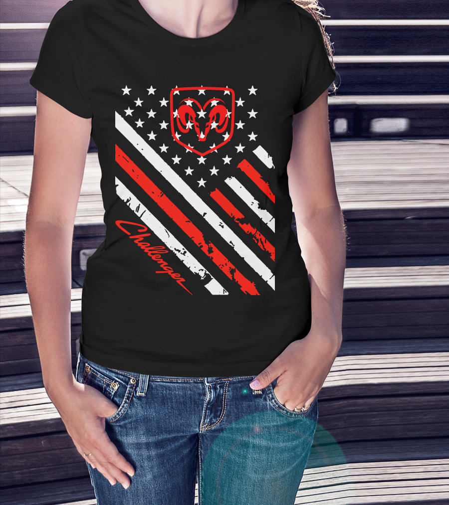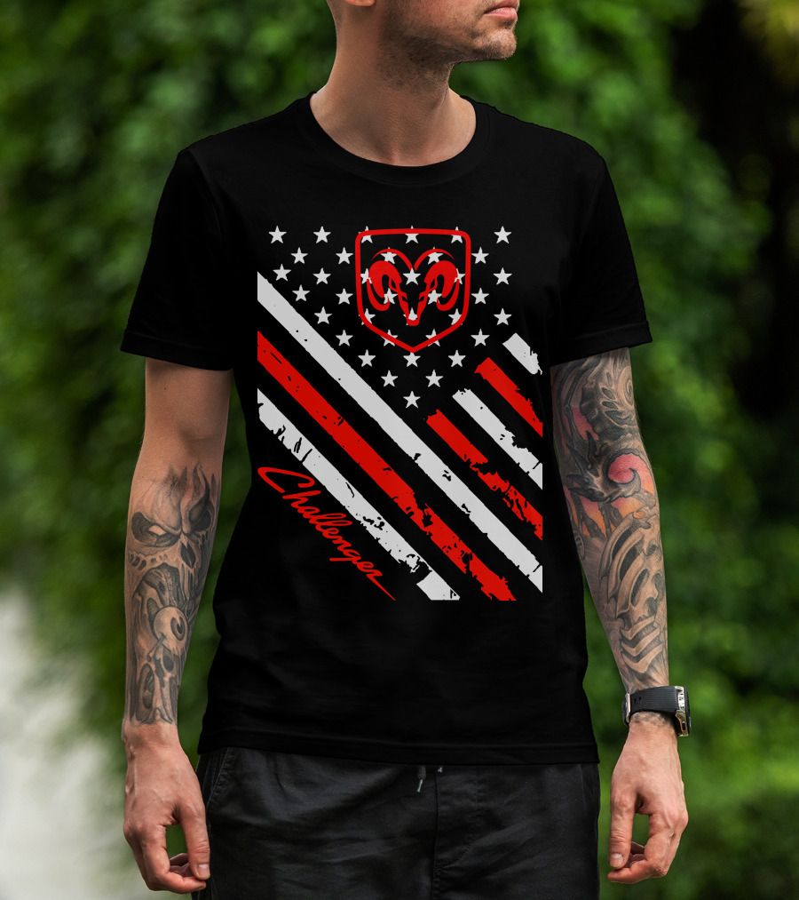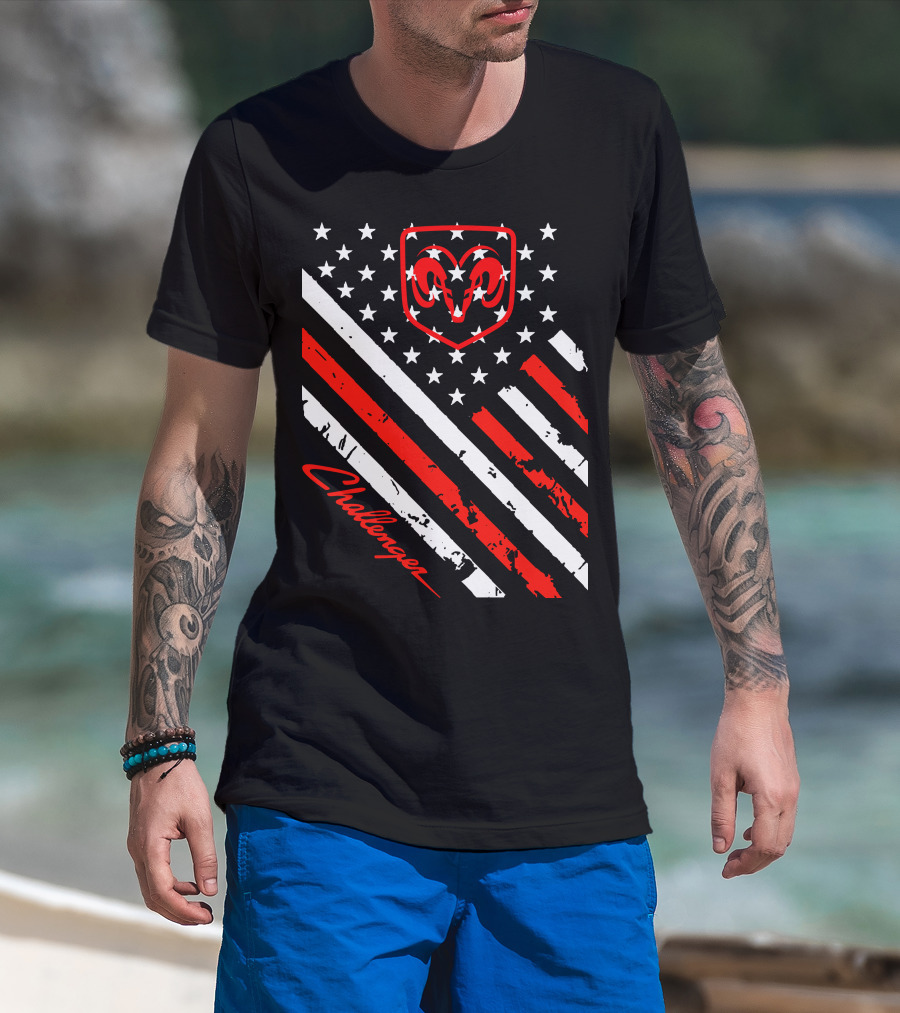 Dodge Challenger Ram American Flag Stripes Stars T-Shirt