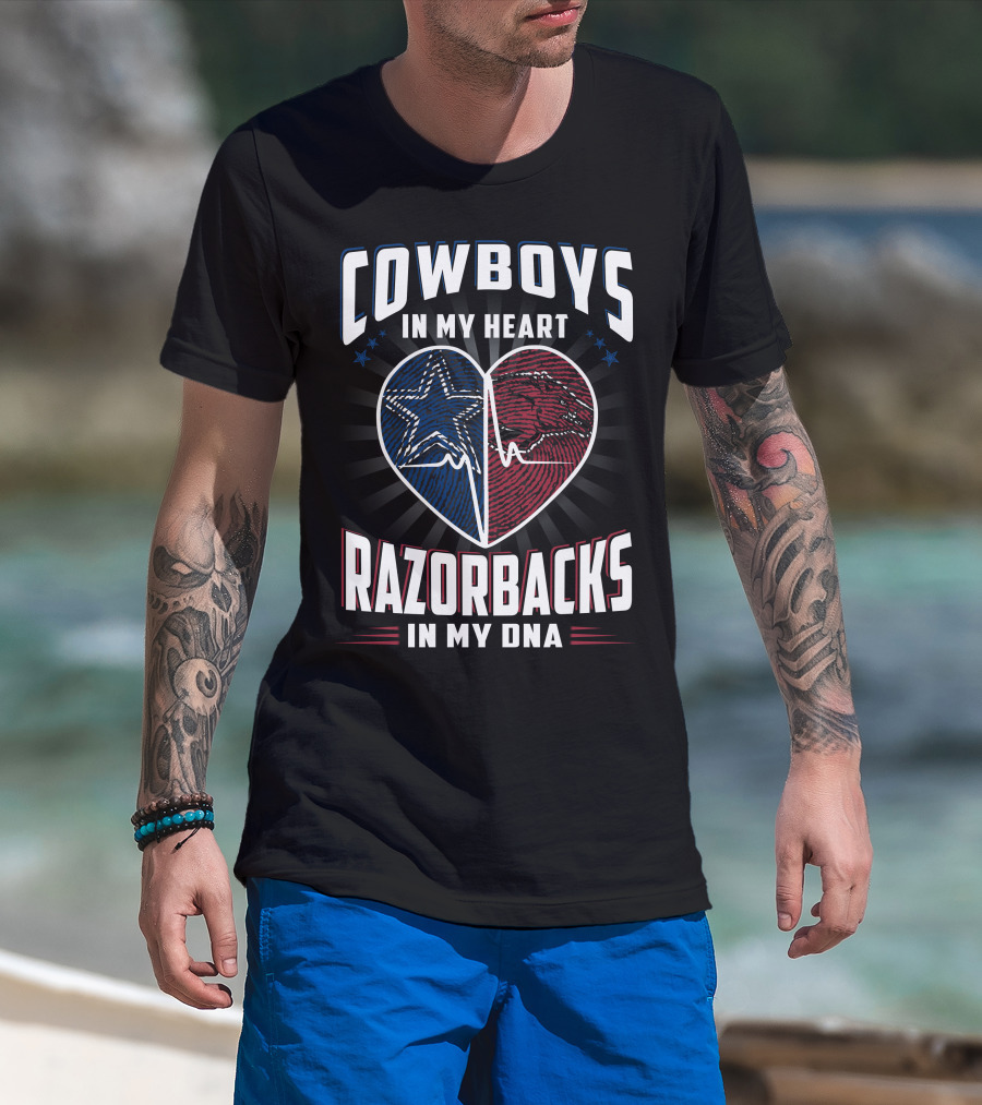 COWBOYS IN MY HEART RAZORBACKS IN MY DNA T-Shirt