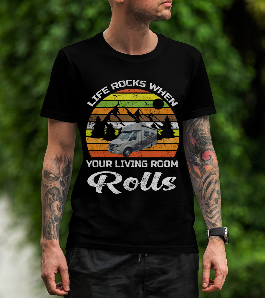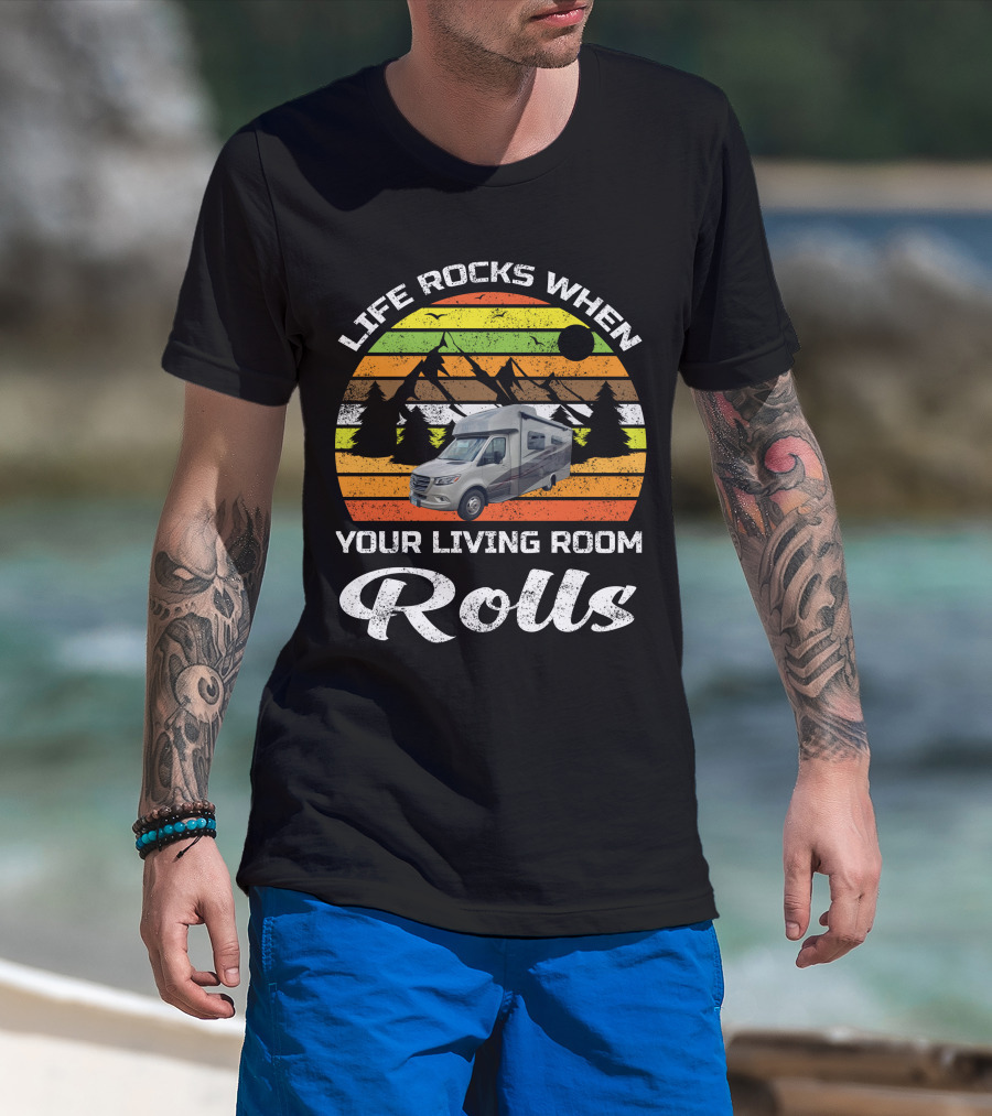 Life Rocks When Your Living Room Rolls Tiffin Motorhomes Mountain Sunset T-Shirt