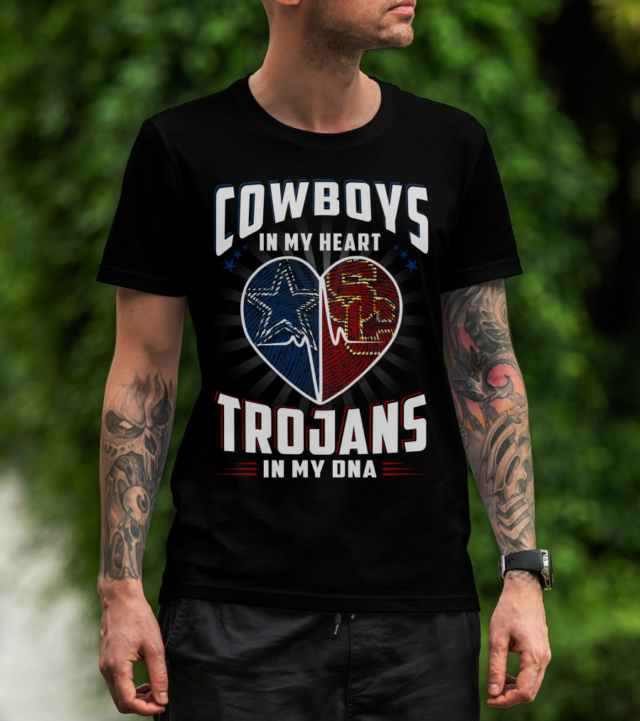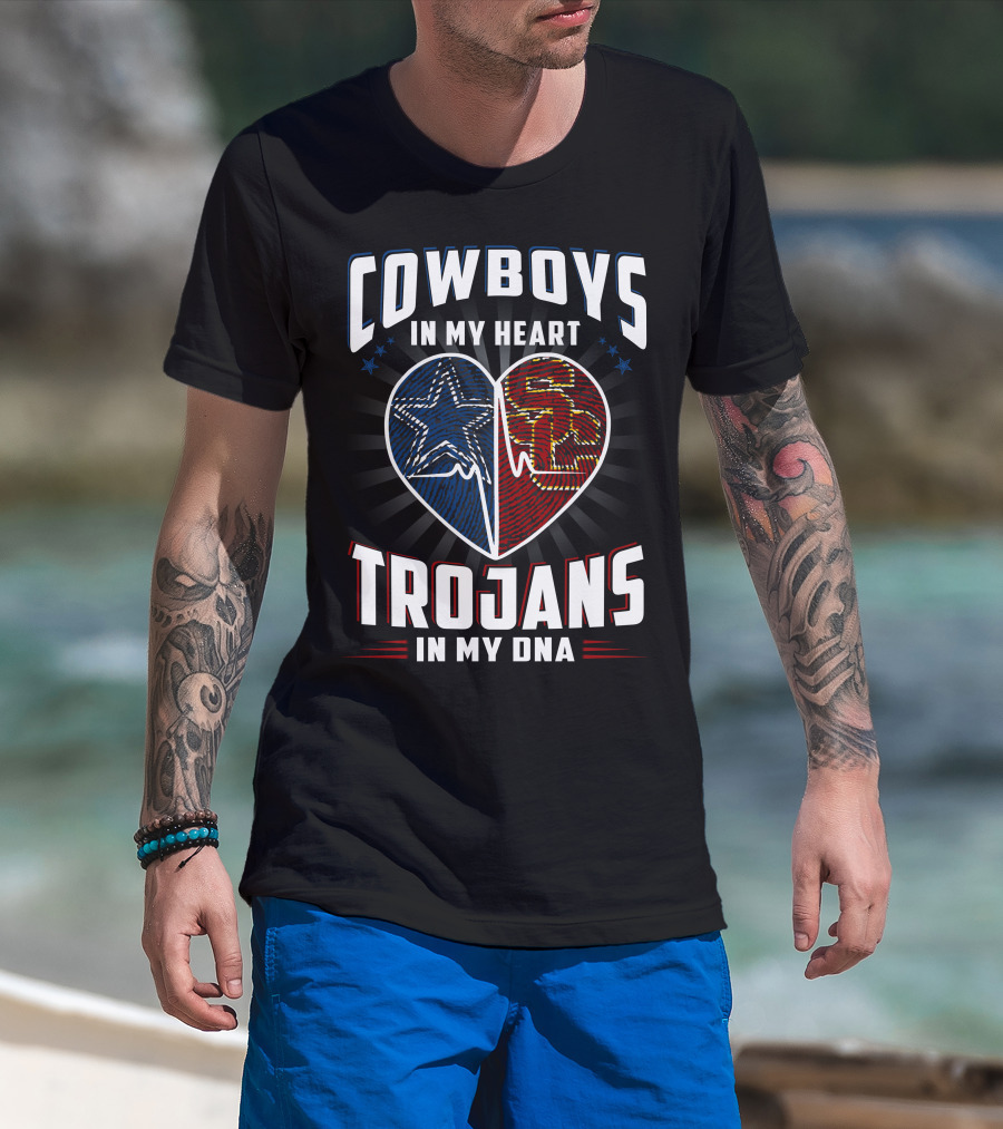 COWBOYS IN MY HEART TROJANS IN MY DNA T-Shirt