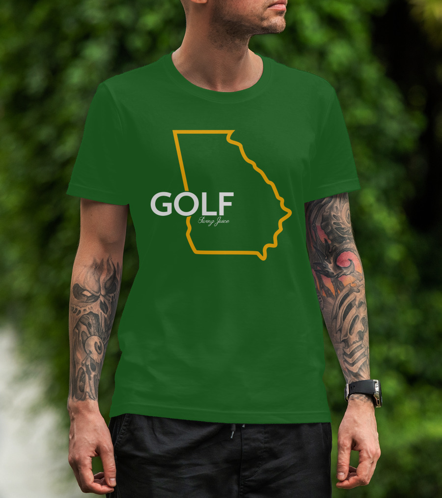 The GOLF Swing Juice Georgia Outline T-shirt is designed for everyday wear and a consistent fit. Fabric is pre-shrunk ring-spun cotton with durable stitching. See the size chart below for exact measurements.