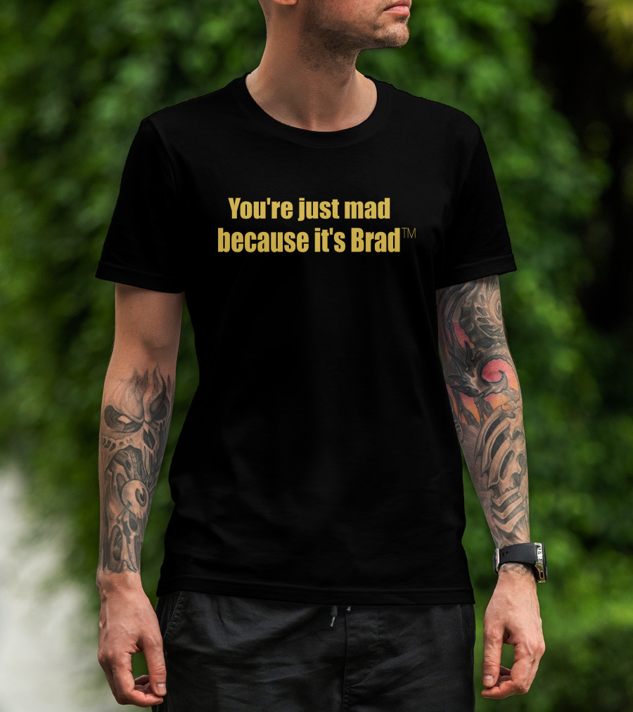 The You're Just Mad Because It's Brad TM T-shirt is designed for everyday wear and a consistent fit. Fabric is pre-shrunk ring-spun cotton with durable stitching. See the size chart below for exact measurements.