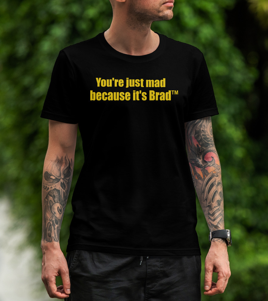 The You're Just Mad Because It's Brad T-shirt is designed for everyday wear and a consistent fit. Fabric is pre-shrunk ring-spun cotton with durable stitching. See the size chart below for exact measurements.