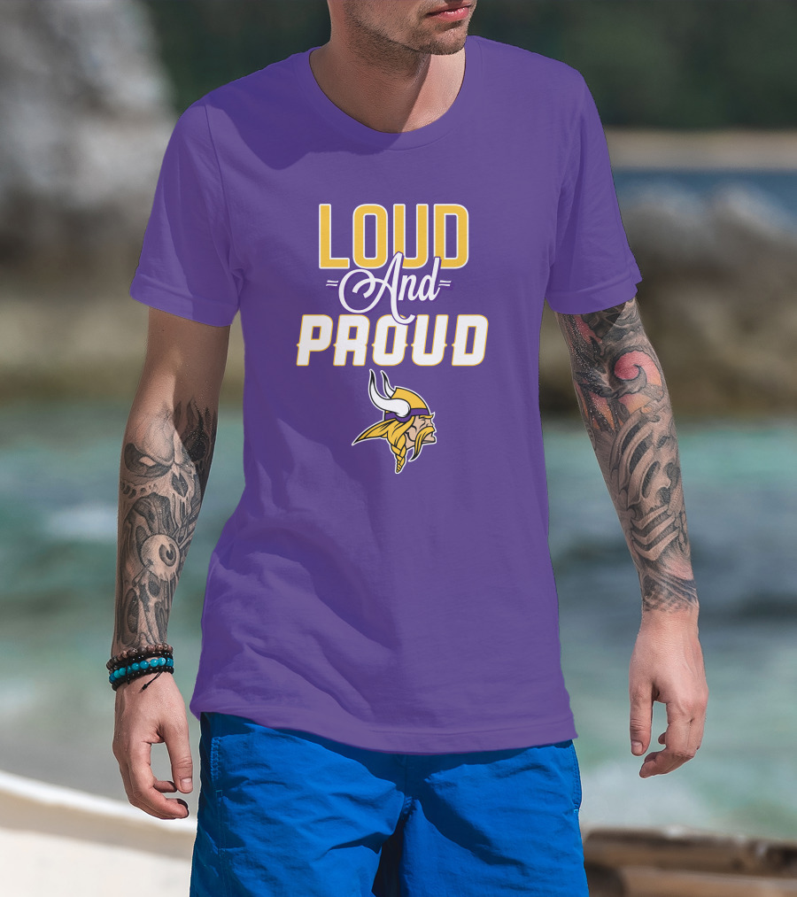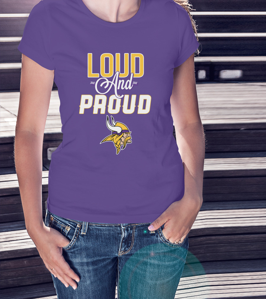 The Loud and Proud Minnesota Vikings T-shirt is designed for everyday wear and a consistent fit. Fabric is pre-shrunk ring-spun cotton with durable stitching. See the size chart below for exact measurements.