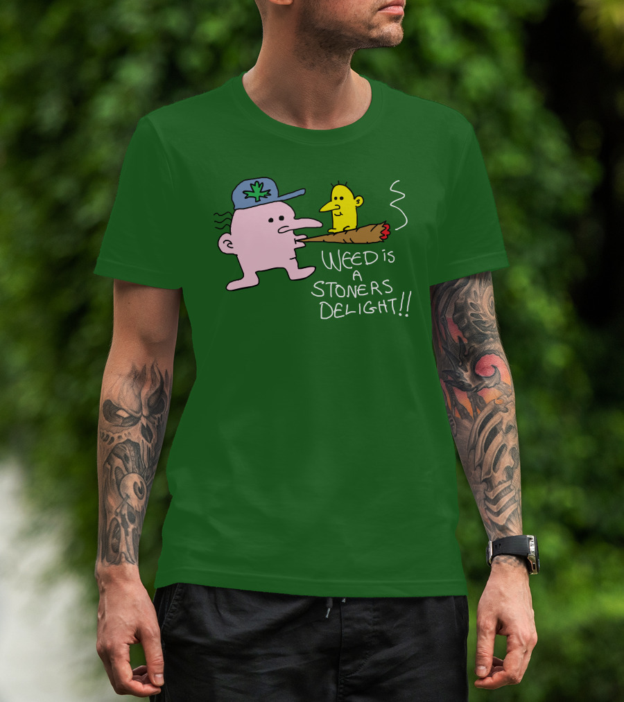 The Weed Is A Stoners Delight Cartoon Characters Smoking Joint T-shirt is designed for everyday wear and a consistent fit. Fabric is pre-shrunk ring-spun cotton with durable stitching. See the size chart below for exact measurements.