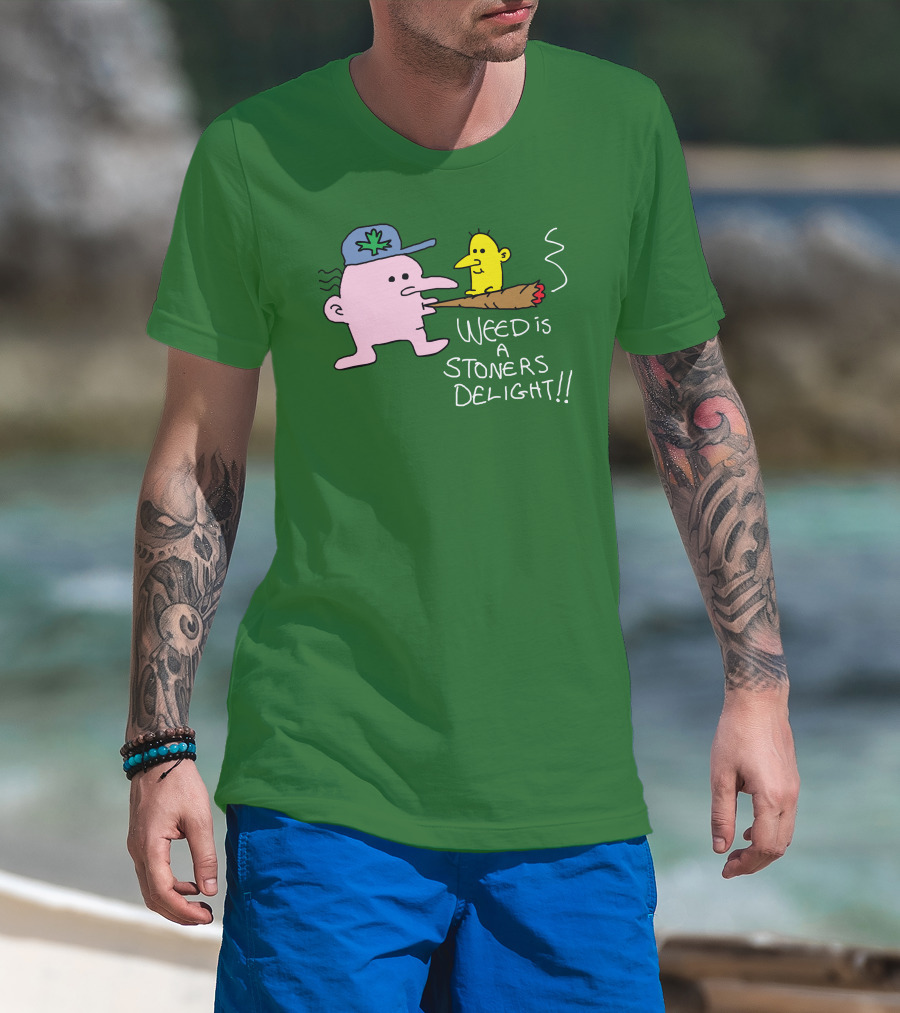 Weed Is A Stoners Delight Cartoon Characters Smoking Joint T-Shirt
