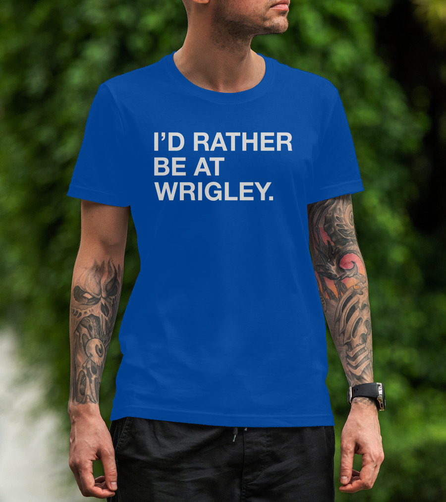 The I'd Rather Be at Wrigley T-shirt is designed for everyday wear and a consistent fit. Fabric is pre-shrunk ring-spun cotton with durable stitching. See the size chart below for exact measurements.