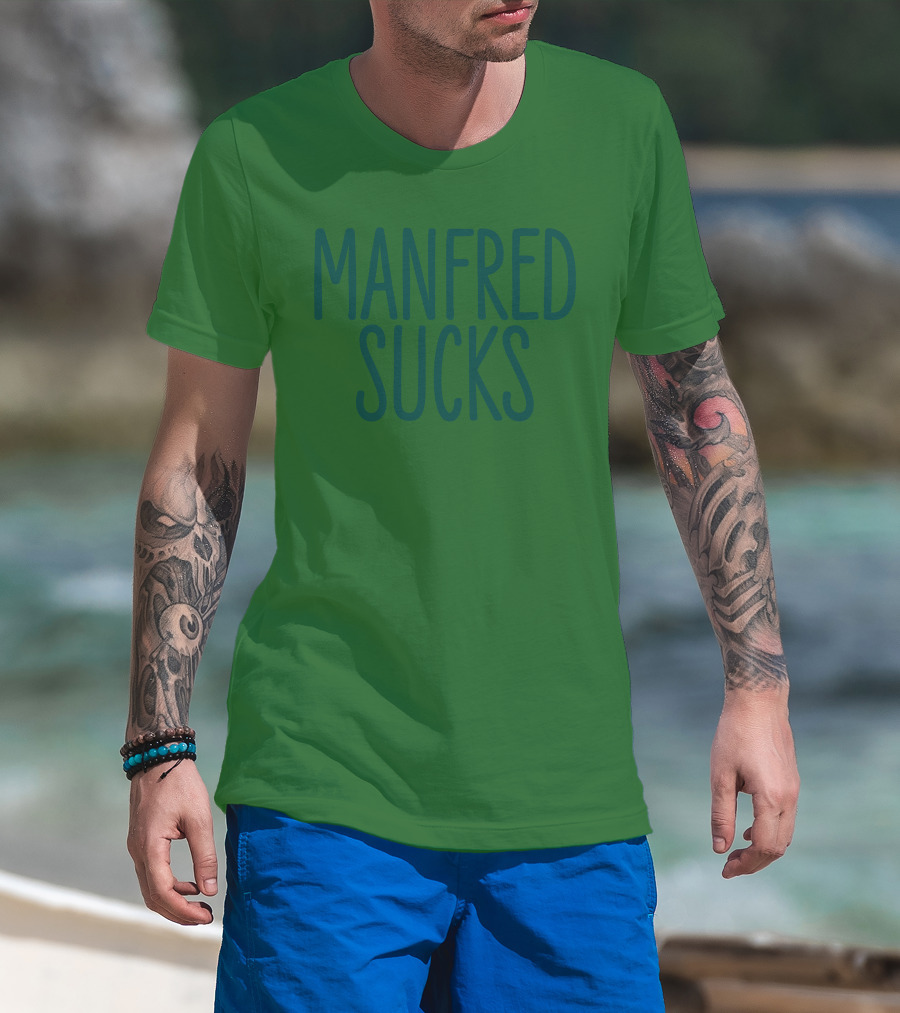 The Manfred Sucks T-shirt is designed for everyday wear and a consistent fit. Fabric is pre-shrunk ring-spun cotton with durable stitching. See the size chart below for exact measurements.