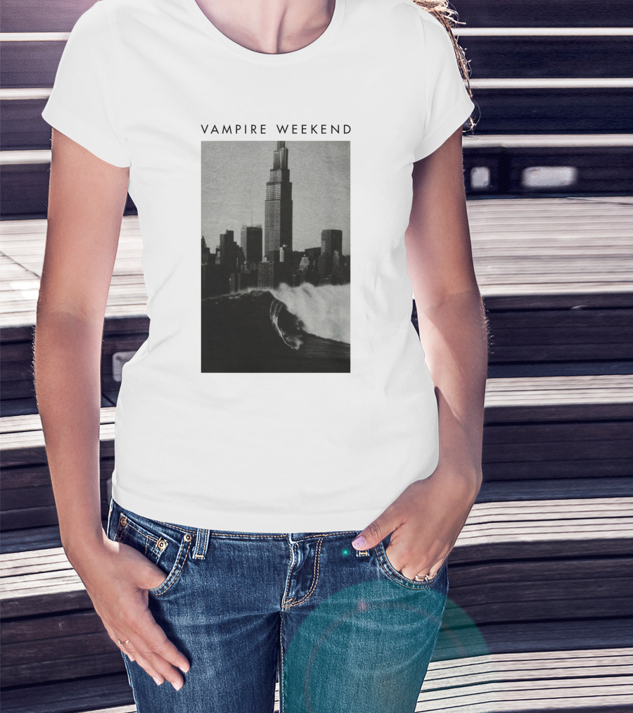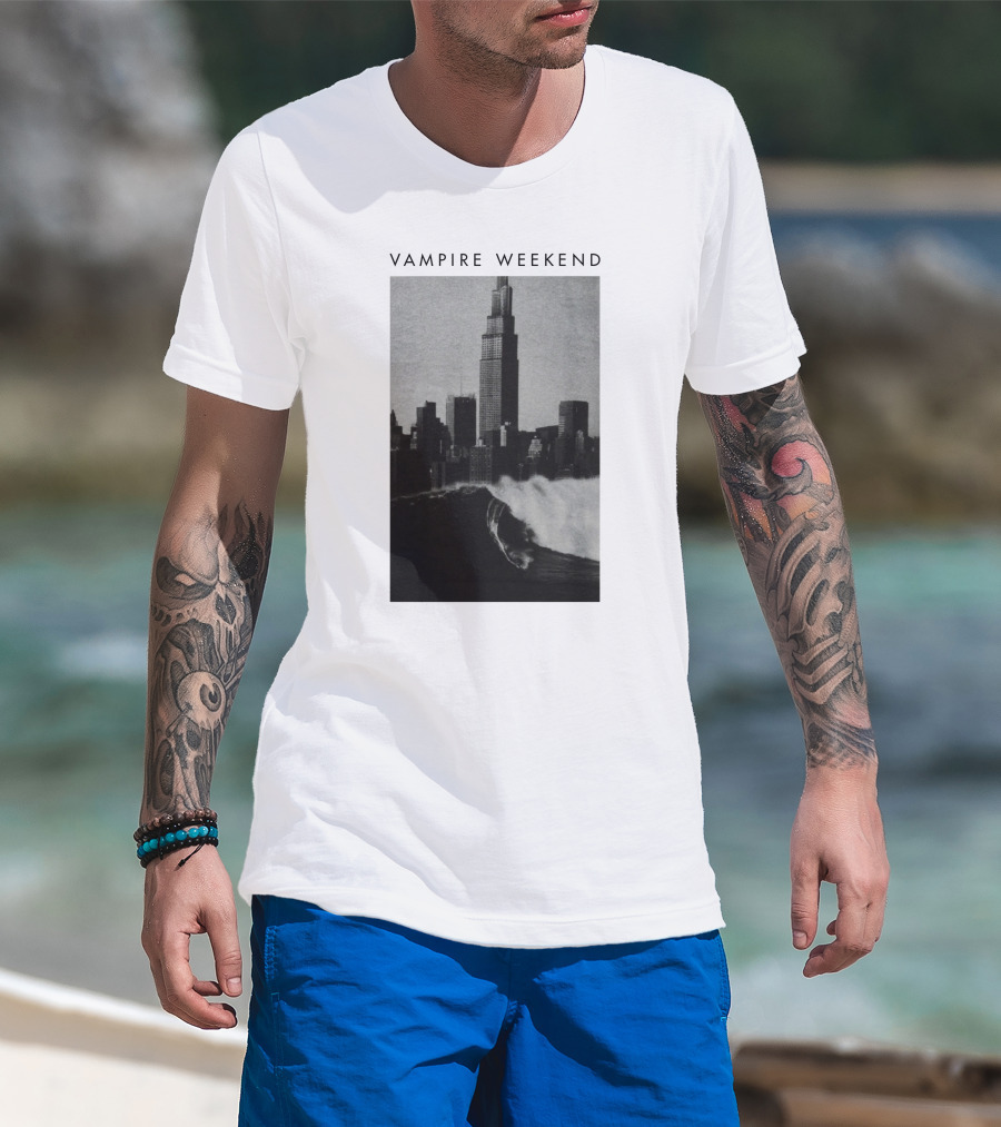 The Vampire Weekend New York City Wave Tower T-shirt is designed for everyday wear and a consistent fit. Fabric is pre-shrunk ring-spun cotton with durable stitching. See the size chart below for exact measurements.