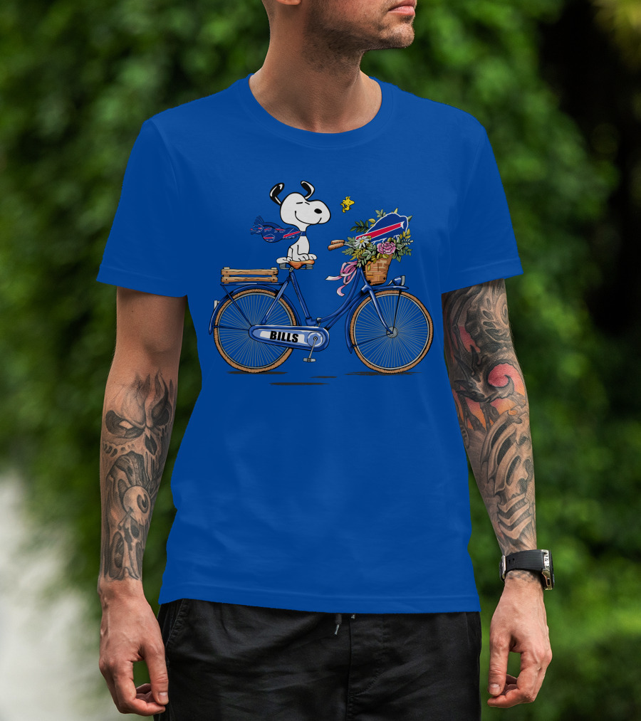 Buffalo Bills Snoopy Bicycle With Woodstock And Football Elements T-Shirt