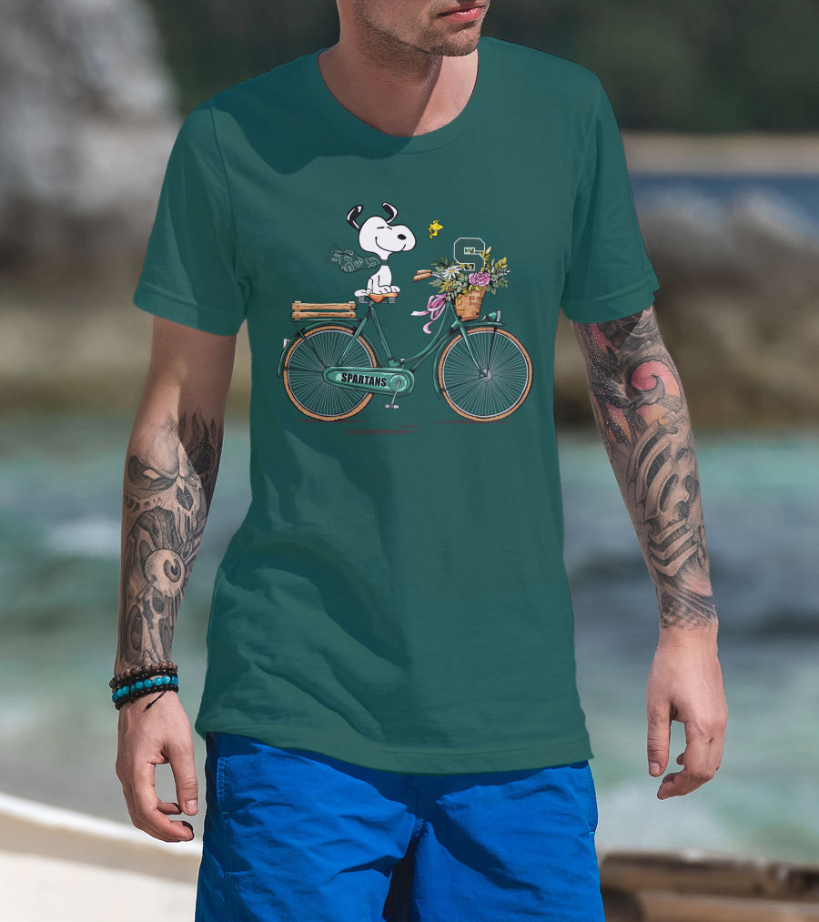 Michigan State Spartans Snoopy On Bicycle With Flowers T-Shirt