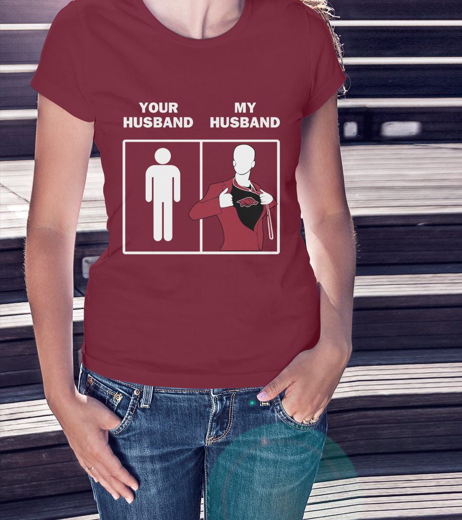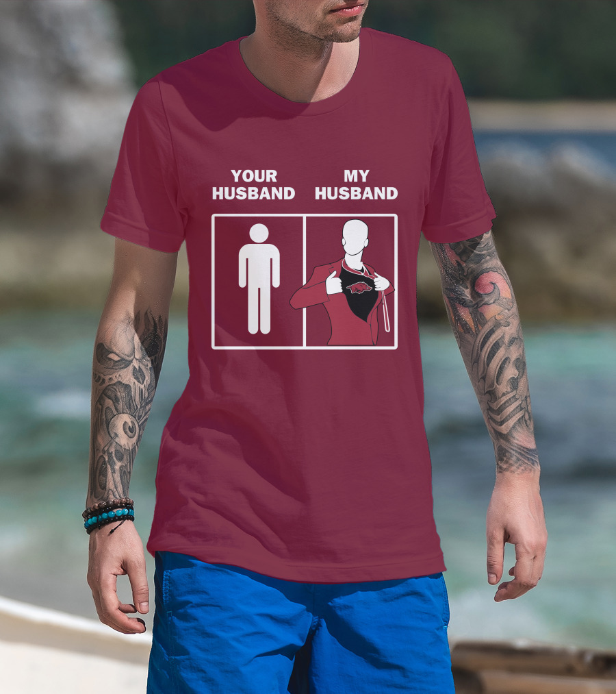 Arkansas Razorbacks Your Husband My Husband Superhero Fan Comparison T-Shirt