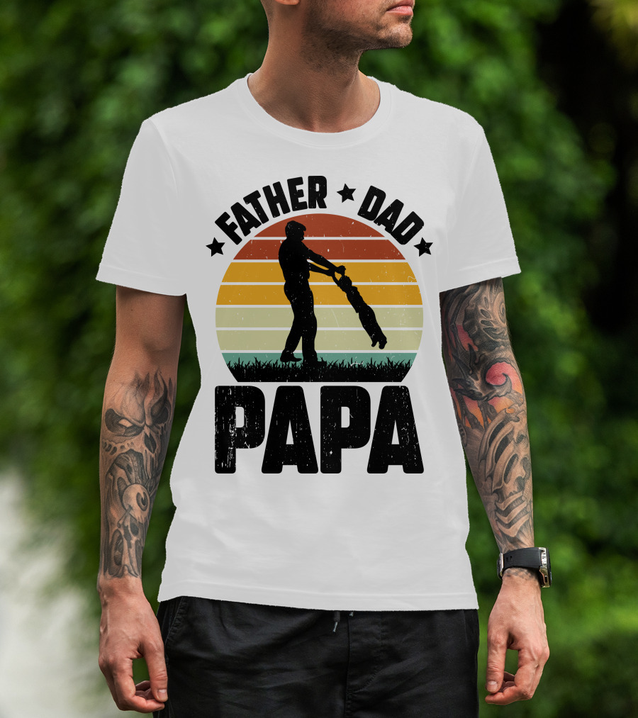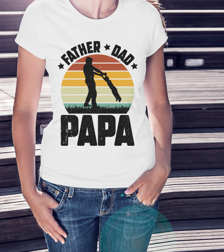 The Father Dad Papa Vintage Sunset T-shirt is designed for everyday wear and a consistent fit. Fabric is pre-shrunk ring-spun cotton with durable stitching. See the size chart below for exact measurements.