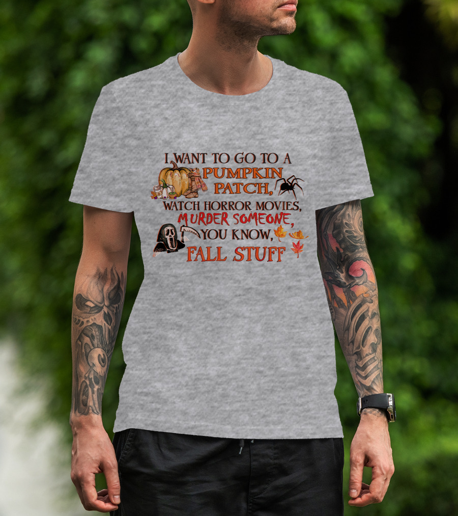 I Want To Go To A Pumpkin Patch, Watch Horror Movies, Murder Someone, You Know, Fall Stuff T-Shirt
