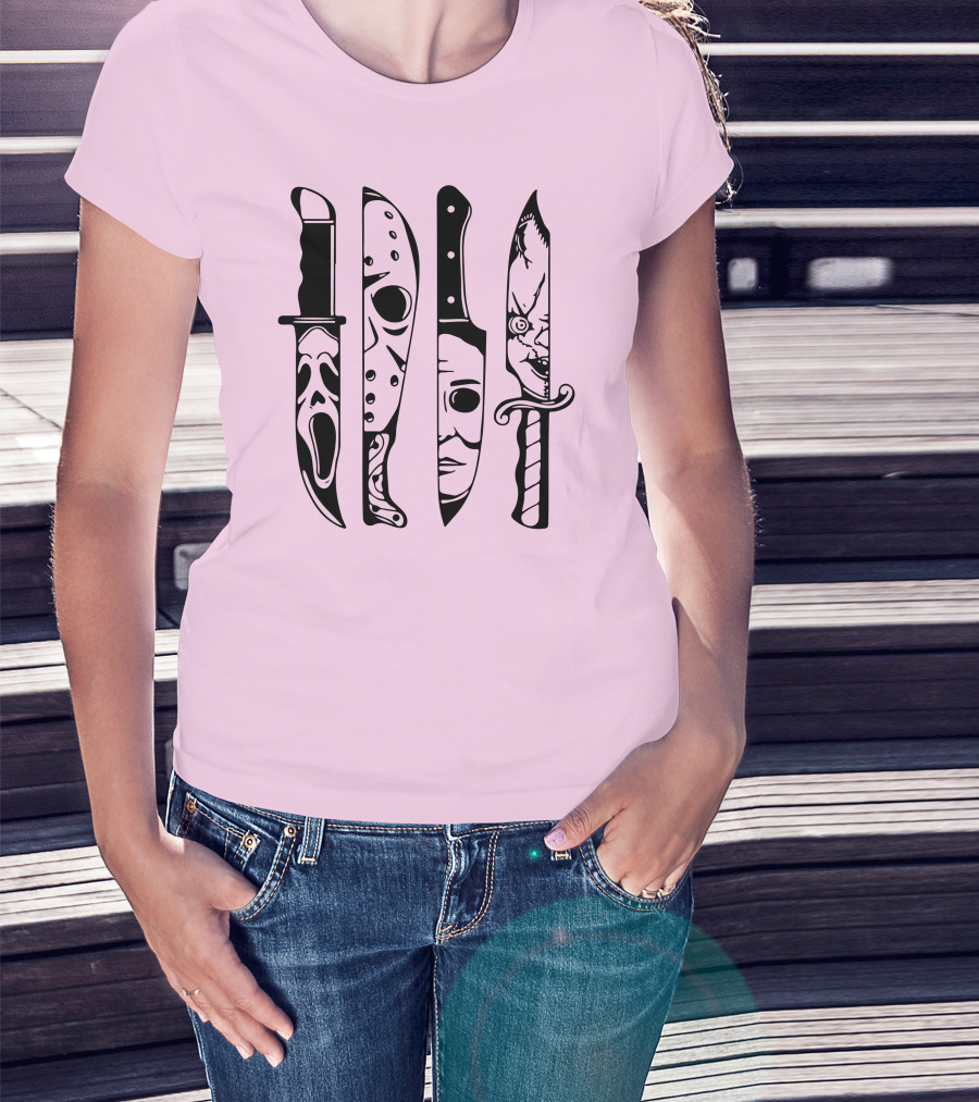 Horror Movie Icons Knives Scream Mask Halloween Clown Face T-Shirt