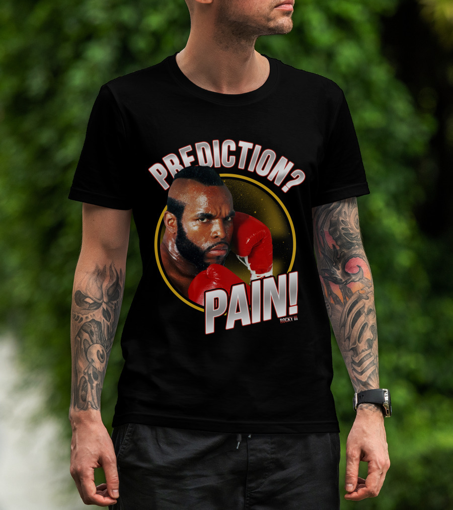 The Rocky III Prediction? Pain T-shirt is designed for everyday wear and a consistent fit. Fabric is pre-shrunk ring-spun cotton with durable stitching. See the size chart below for exact measurements.