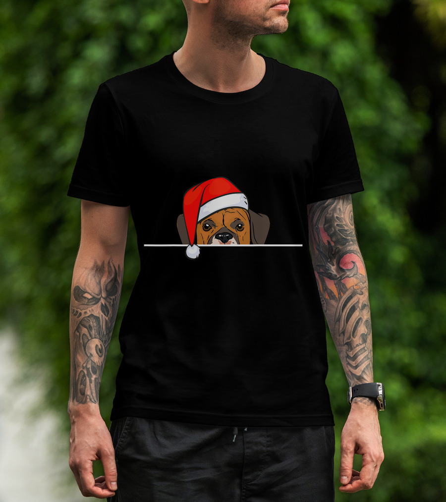 Boxer Dog In Santa Hat For Christmas T-Shirt