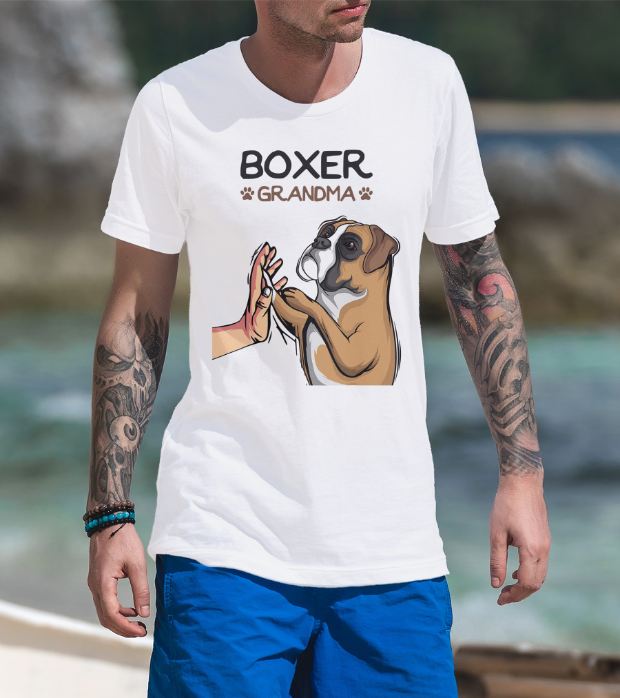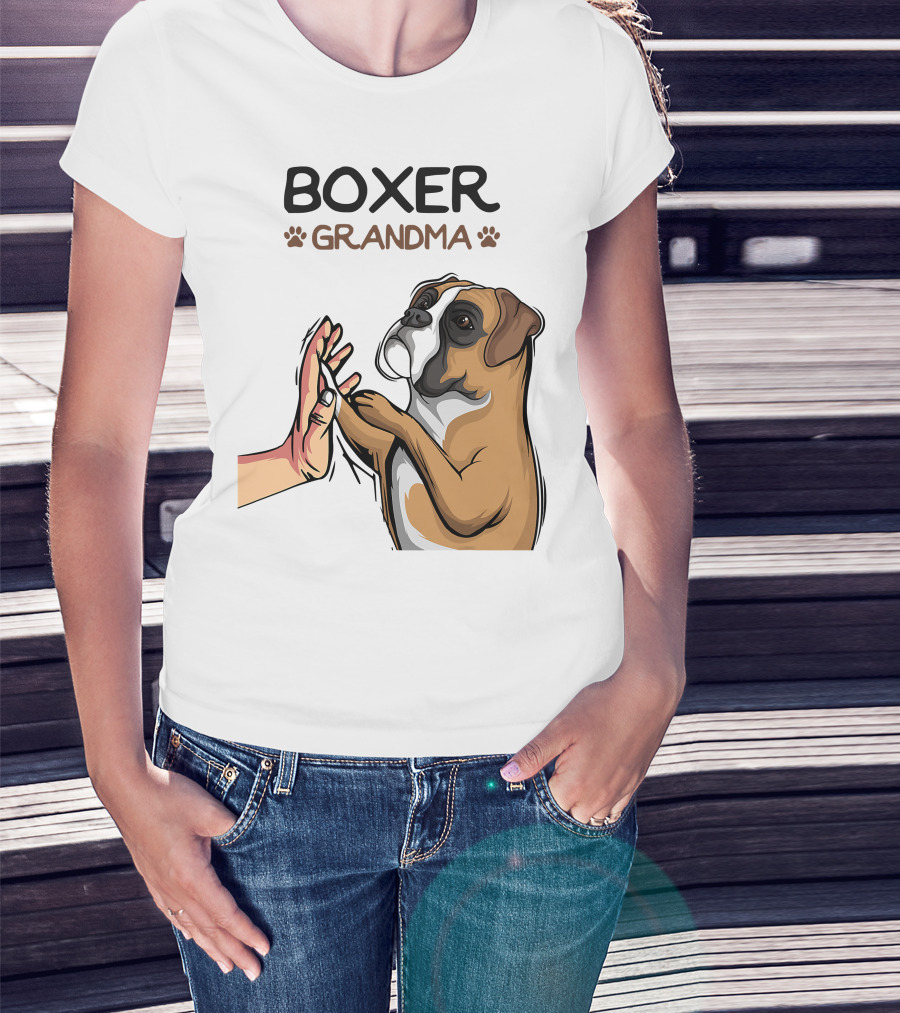 Boxer Grandma High-Five With Dog Paws T-Shirt