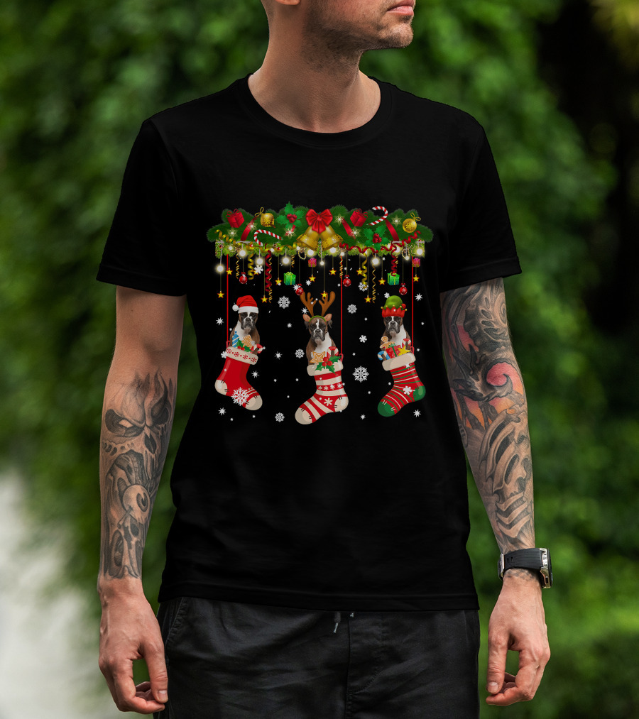 Boxer Dog In Christmas Stocking Santa Hat Reindeer Antlers Santa EL T-Shirt