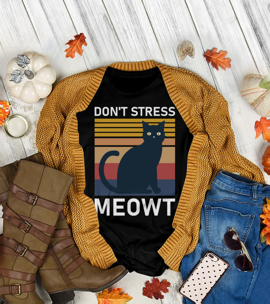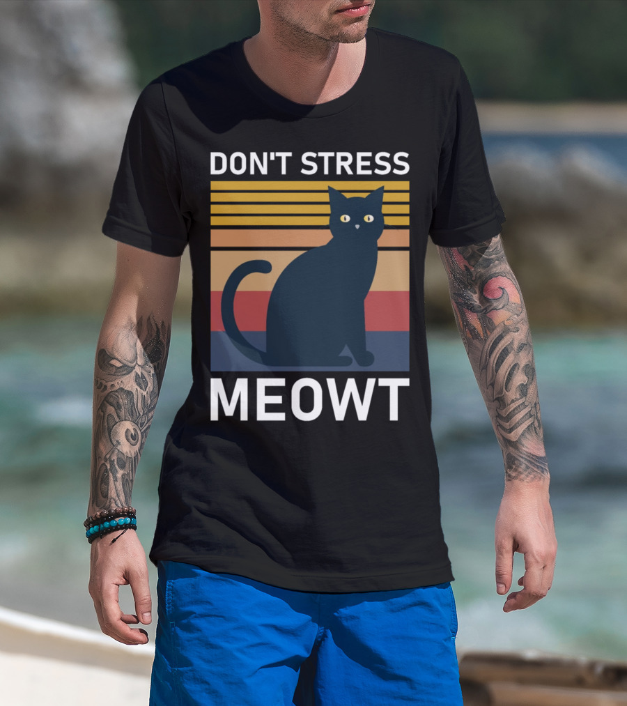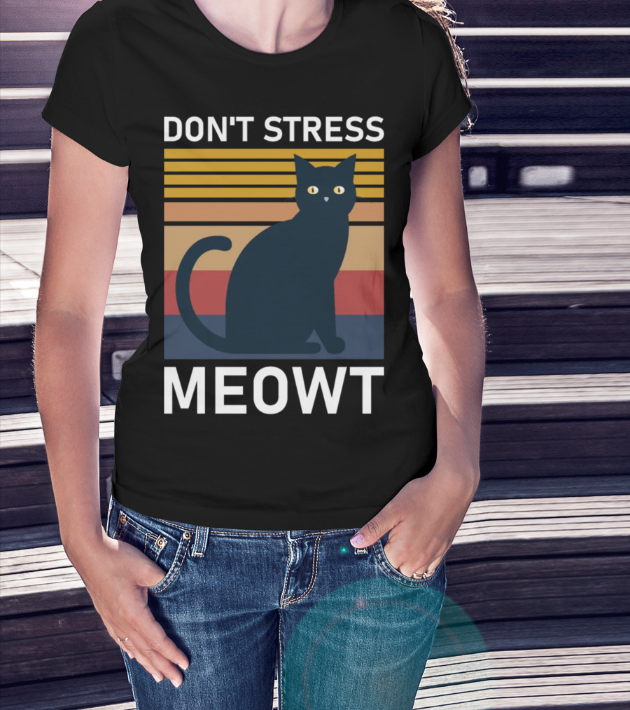 Don't Stress Meowt Retro Striped Cat T-Shirt
