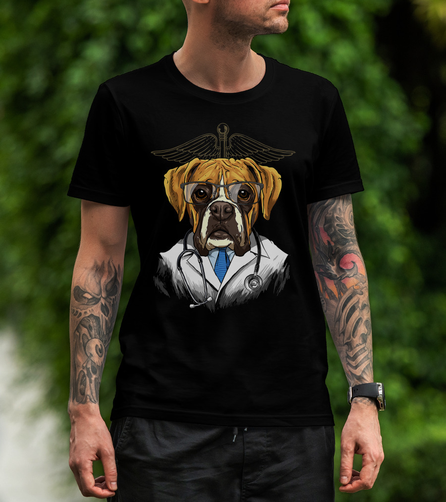 Boxer Dogtor Vet Veterinarian Dog Doctor With Stethoscope And Medical T-Shirt