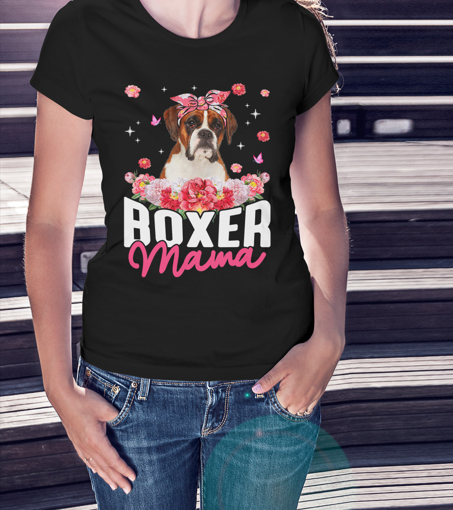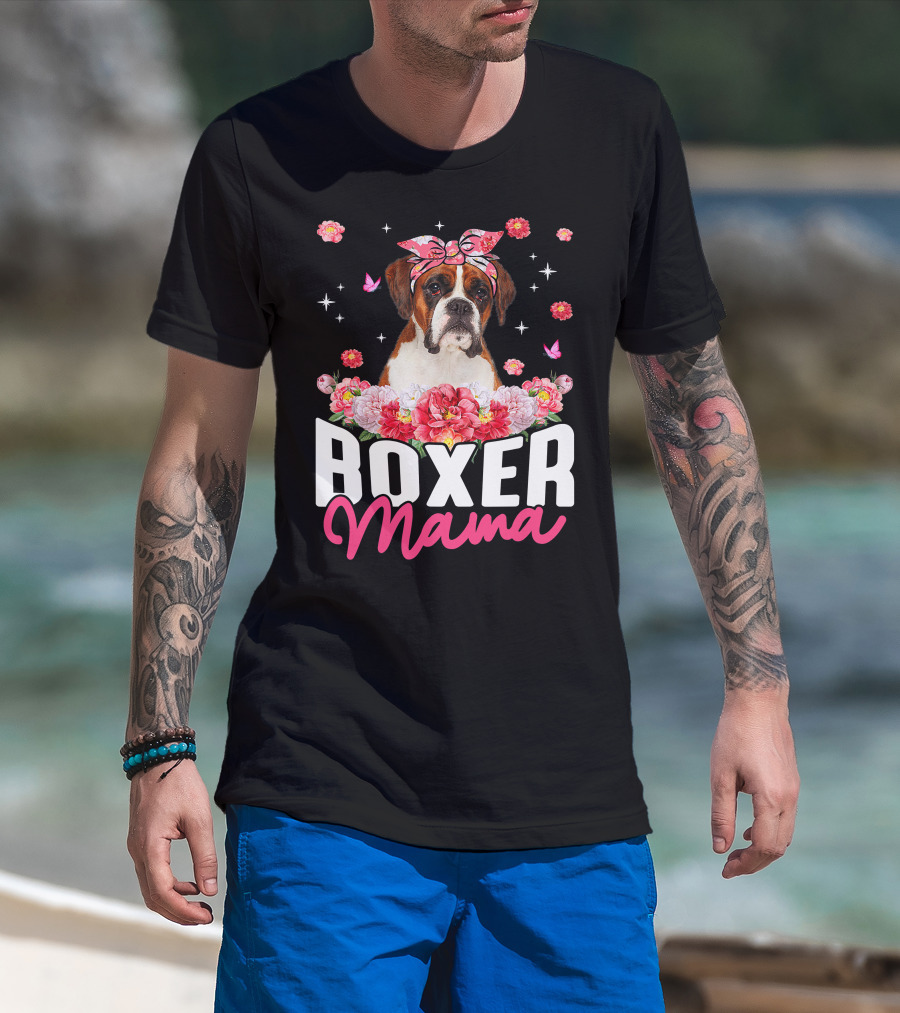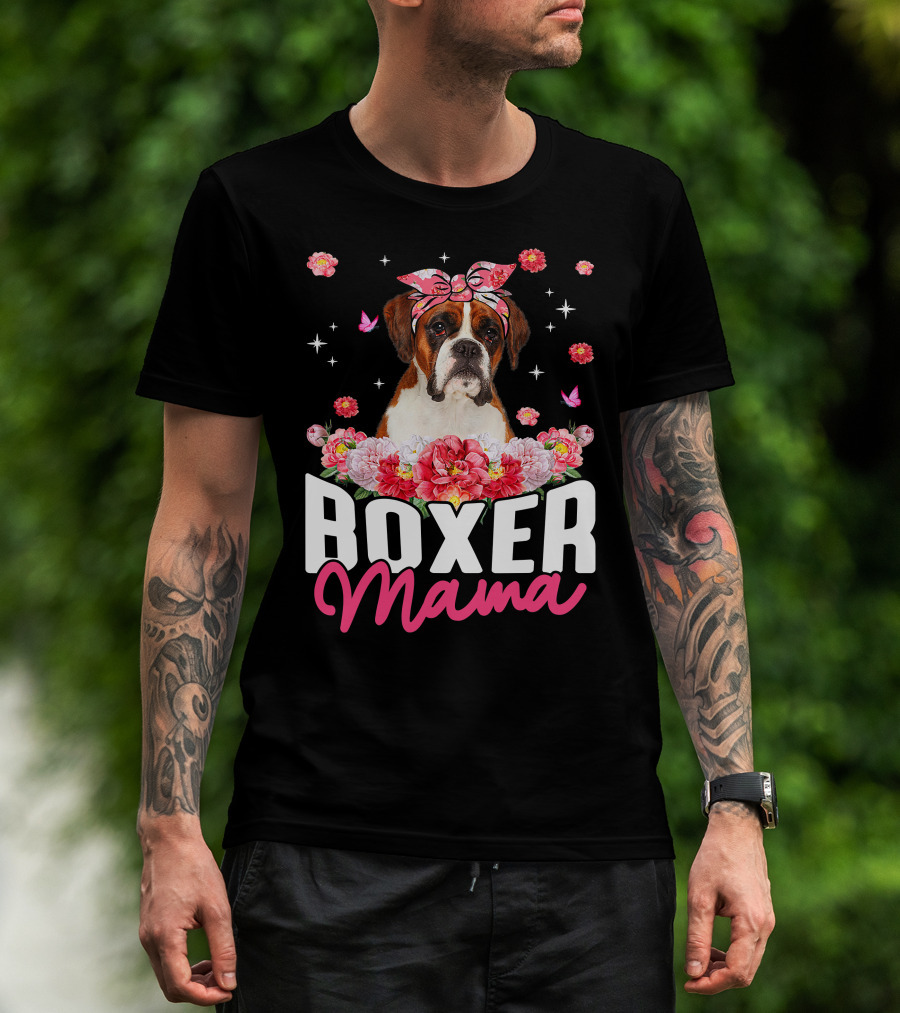 Boxer Mama Flower Bandana Blossoms And Butterflies T-Shirt