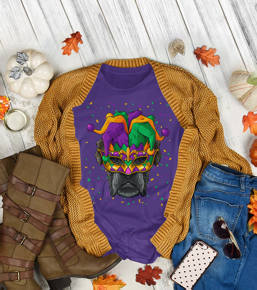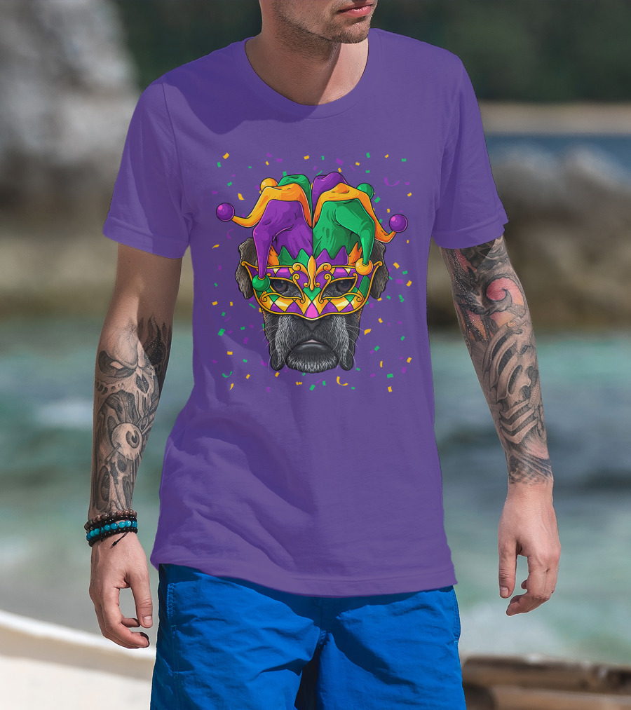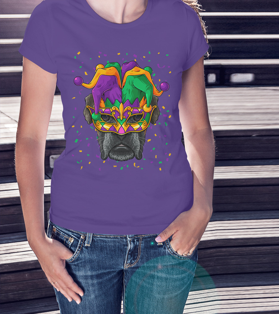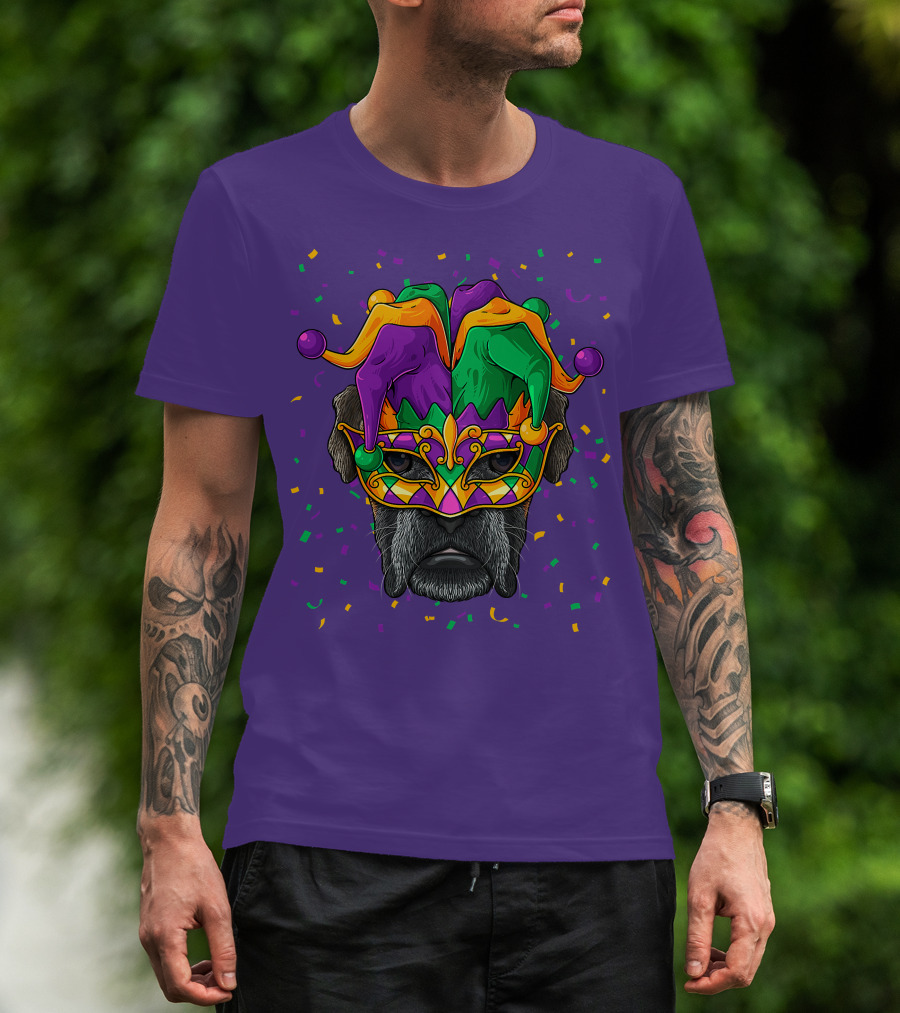 Carnival King Boxer Dog Wearing Jester Mask With Confetti T-Shirt