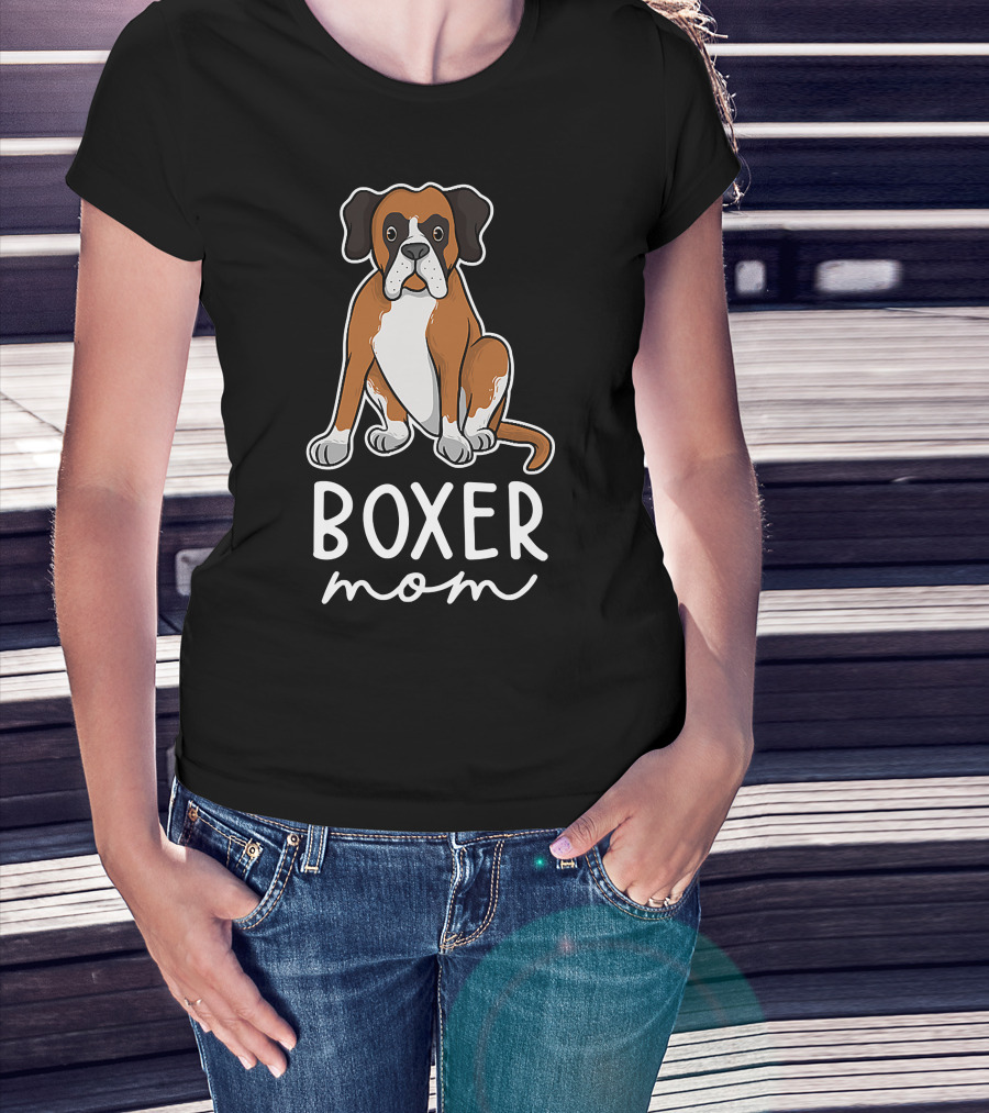 Boxer Mom With Adorable Dog Illustration For Mother's Day T-Shirt
