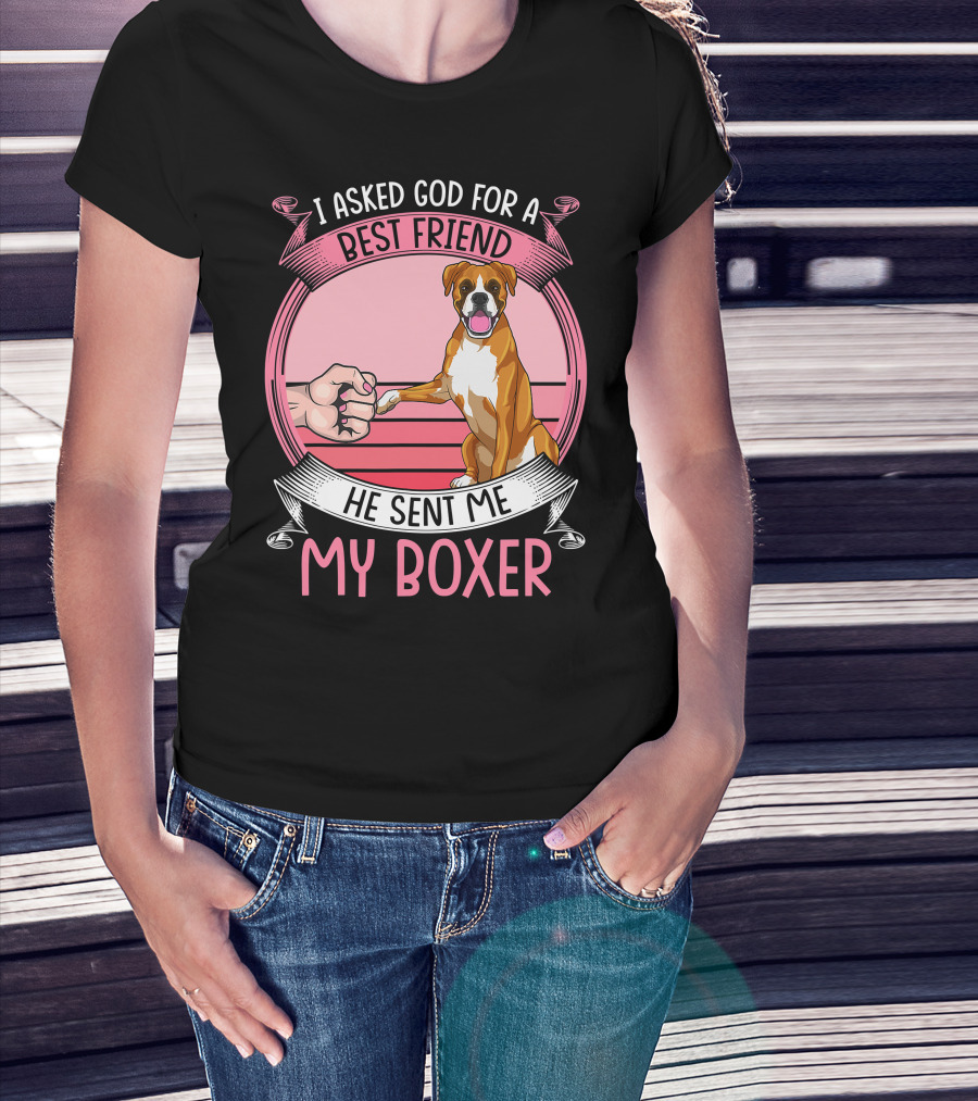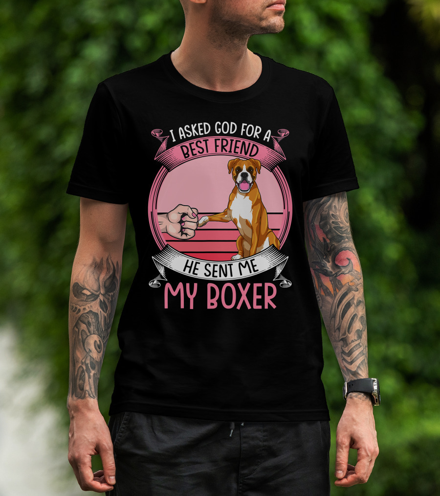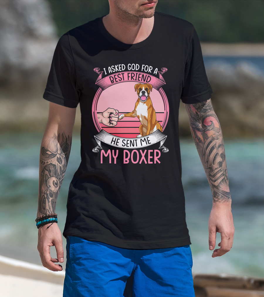 I Asked God For A Best Friend He Sent Me My Boxer Retro Style Boxer Mom T-Shirt