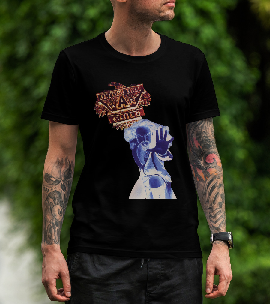 The Jethro Tull War Child Eagle Motif with Reaching Figure T-shirt is designed for everyday wear and a consistent fit. Fabric is pre-shrunk ring-spun cotton with durable stitching. See the size chart below for exact measurements.