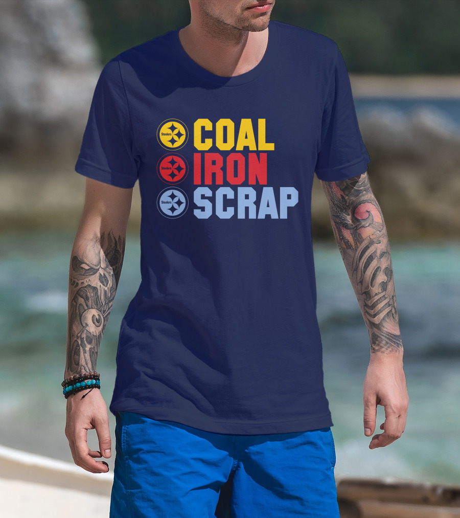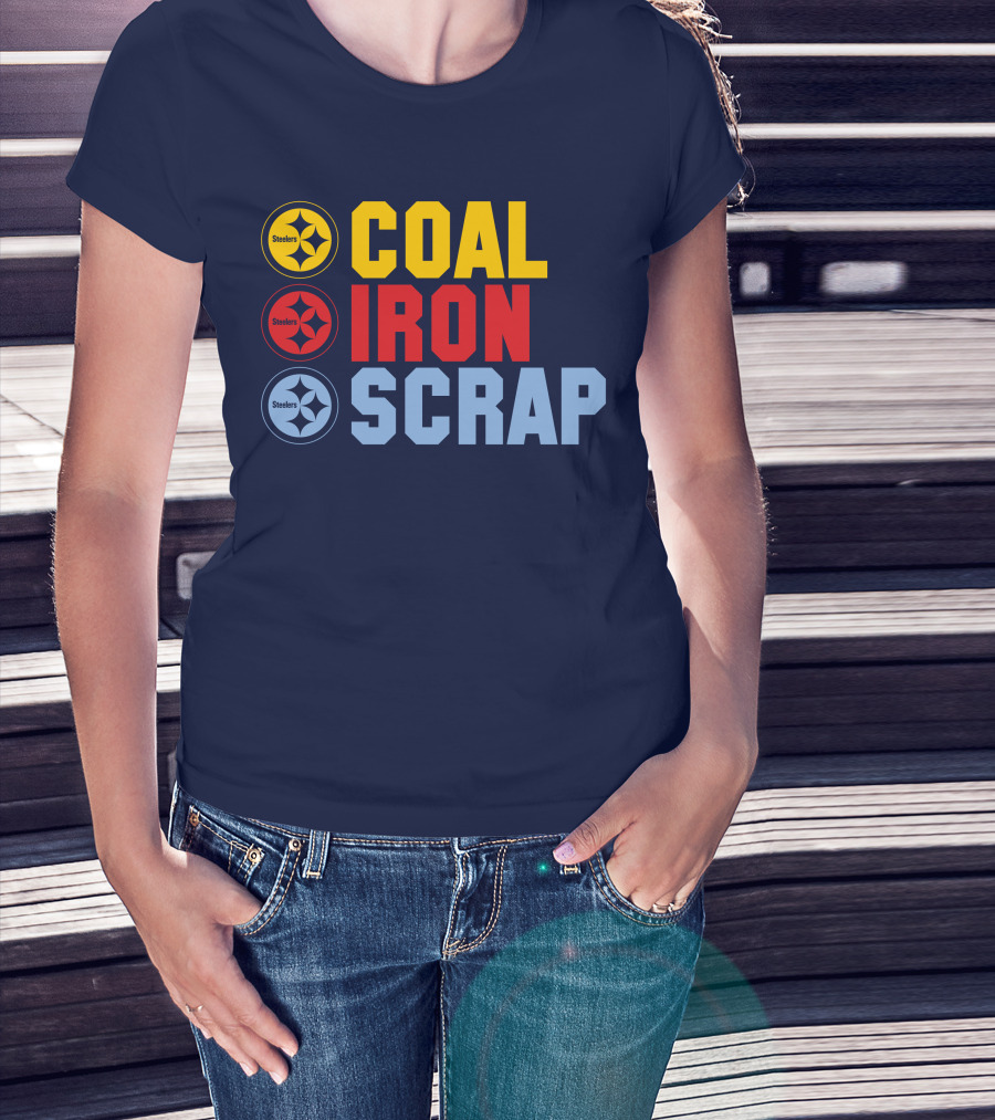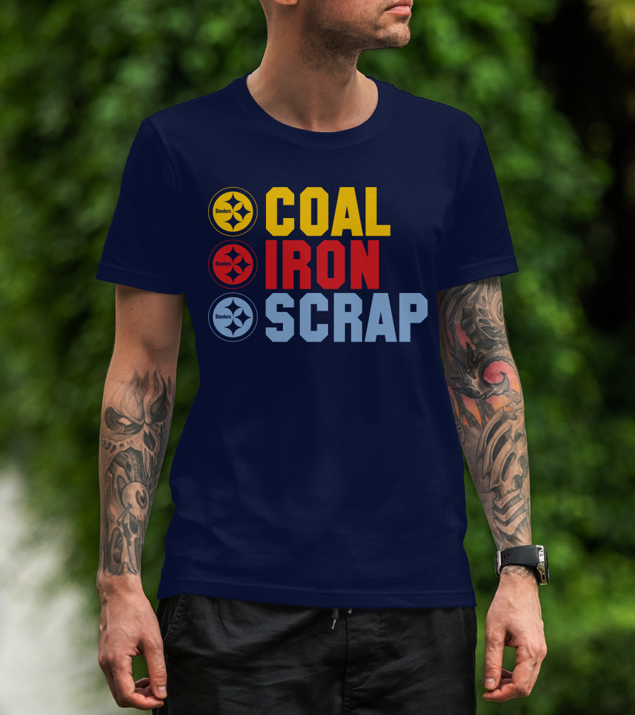 The Steelers Coal Iron Scrap Football T-shirt is designed for everyday wear and a consistent fit. Fabric is pre-shrunk ring-spun cotton with durable stitching. See the size chart below for exact measurements.